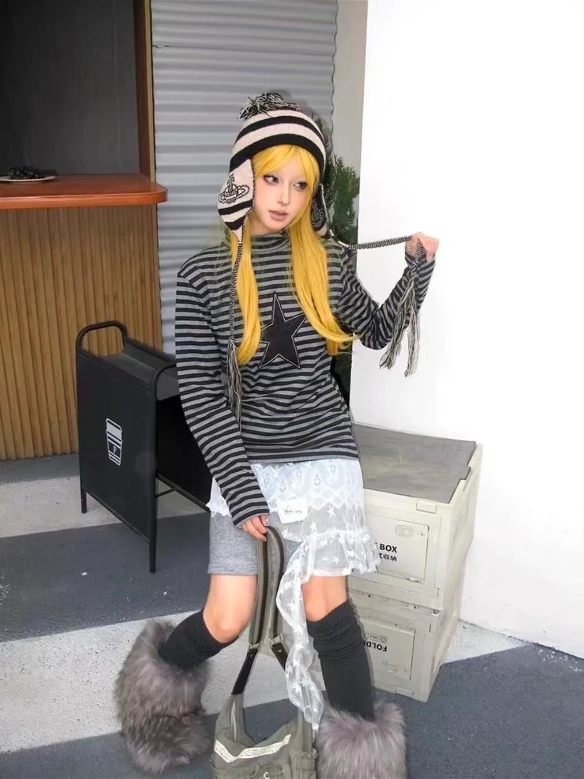 Y2K Star Stripe Soft Touch Knit Cardigan OL2178