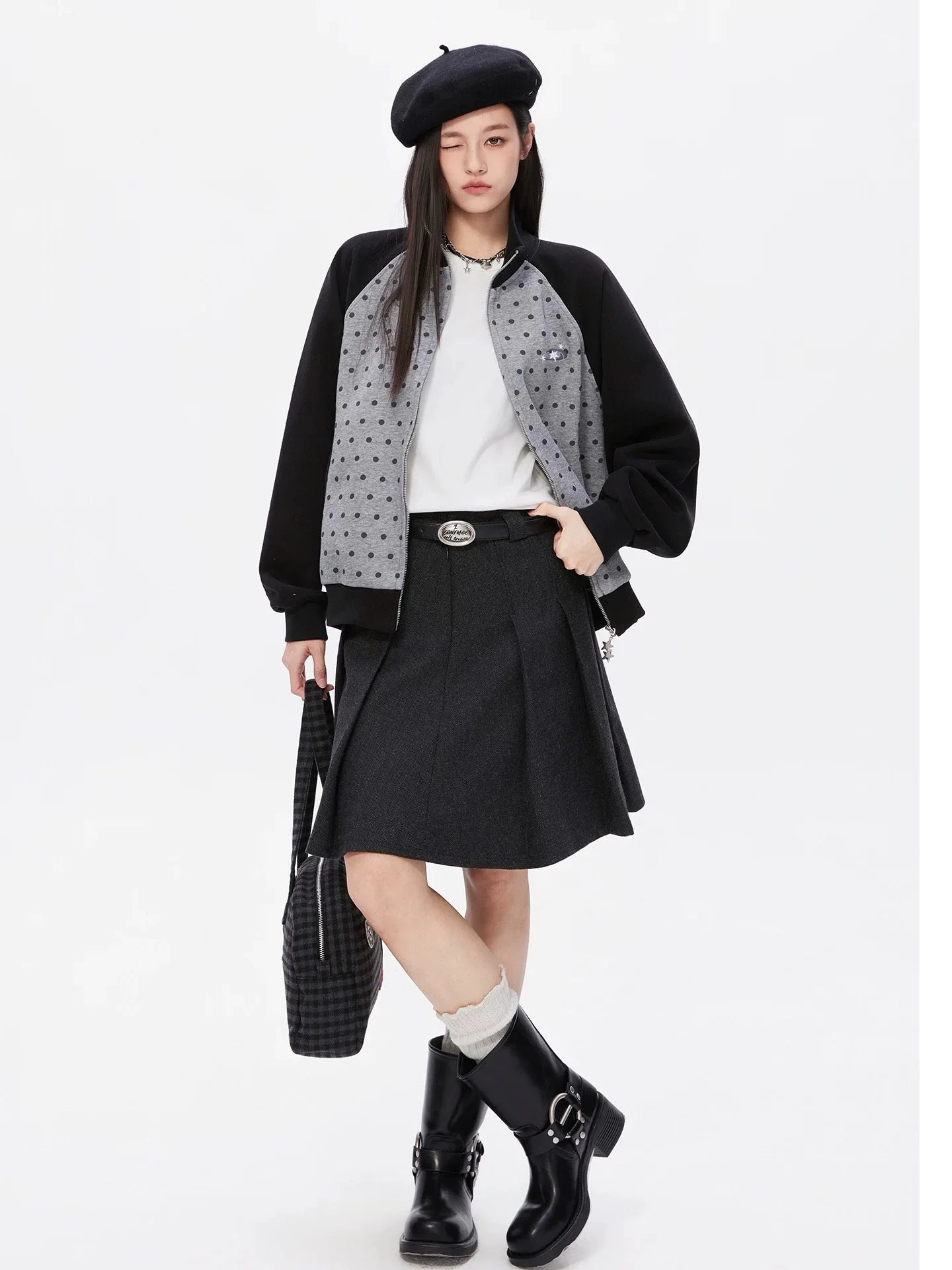 Polka Dot Stand Collar Cropped Jacket OL2222