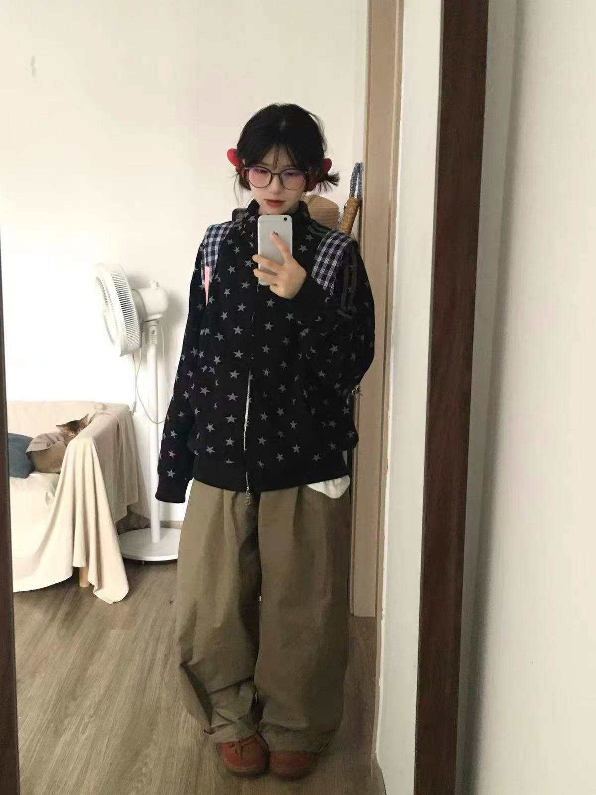 Star Print Cat Ear Padded Jacket with Removable Fur Collar OL2057