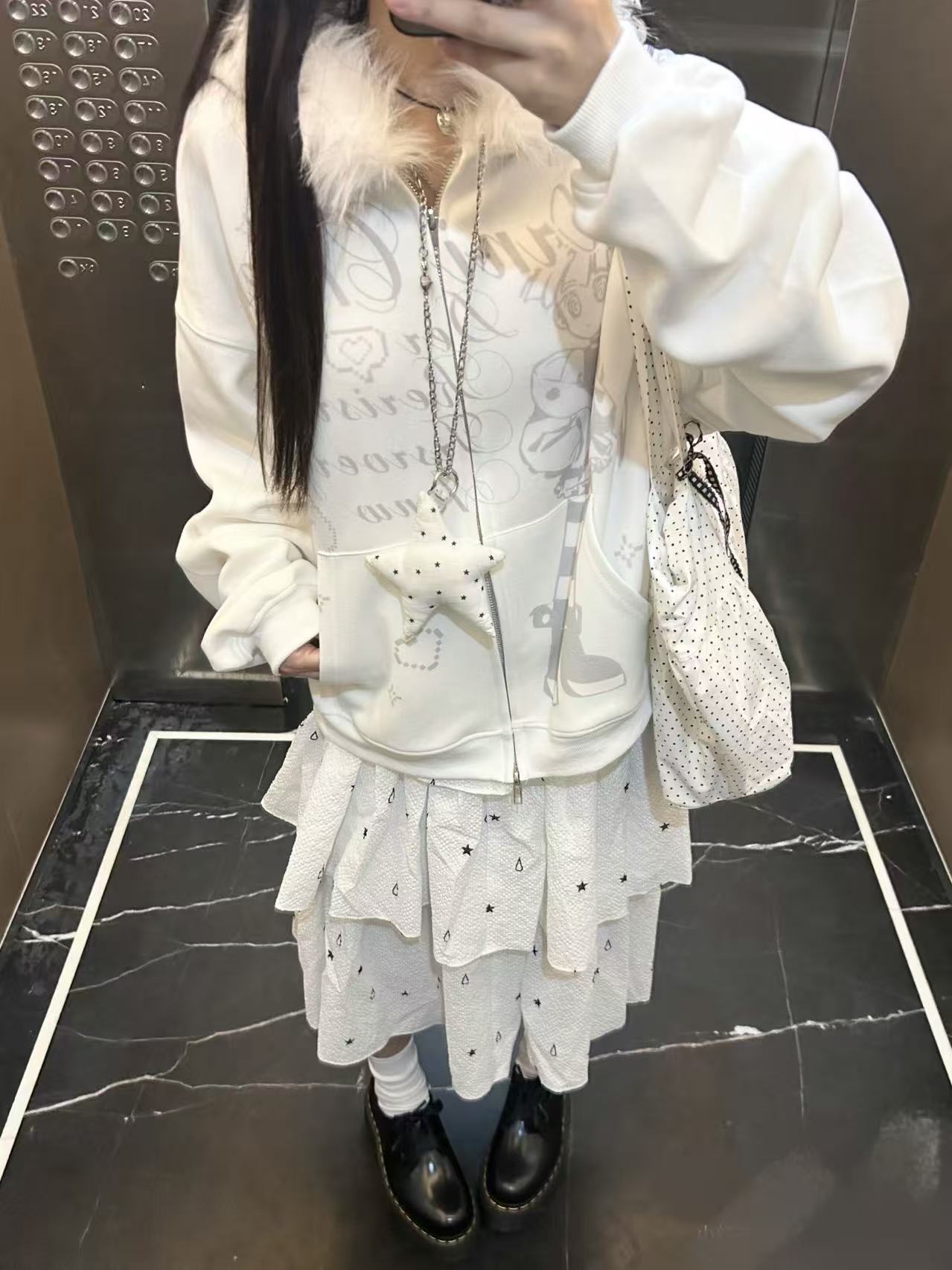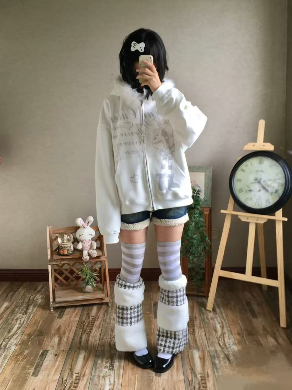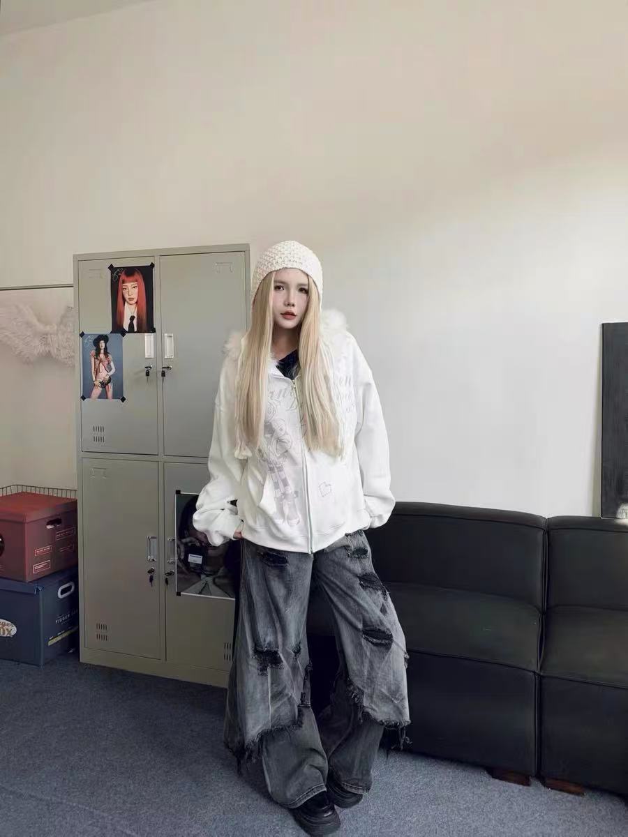 The cartoon embroidery design adds a playful anime feel to the casual look.