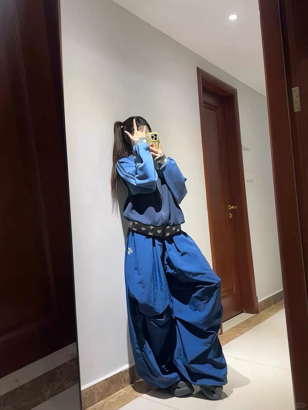 Star Fragment Print High Neck Layered Long Sleeve Top OL2206