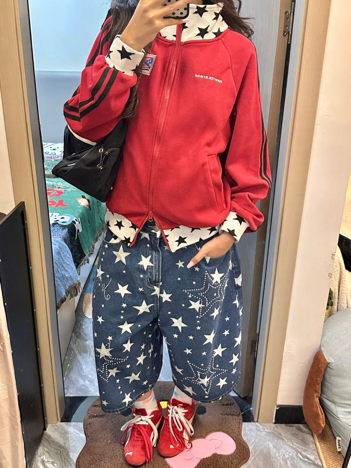 The loose silhouette allows for casual wear, adding a light American sports vibe.