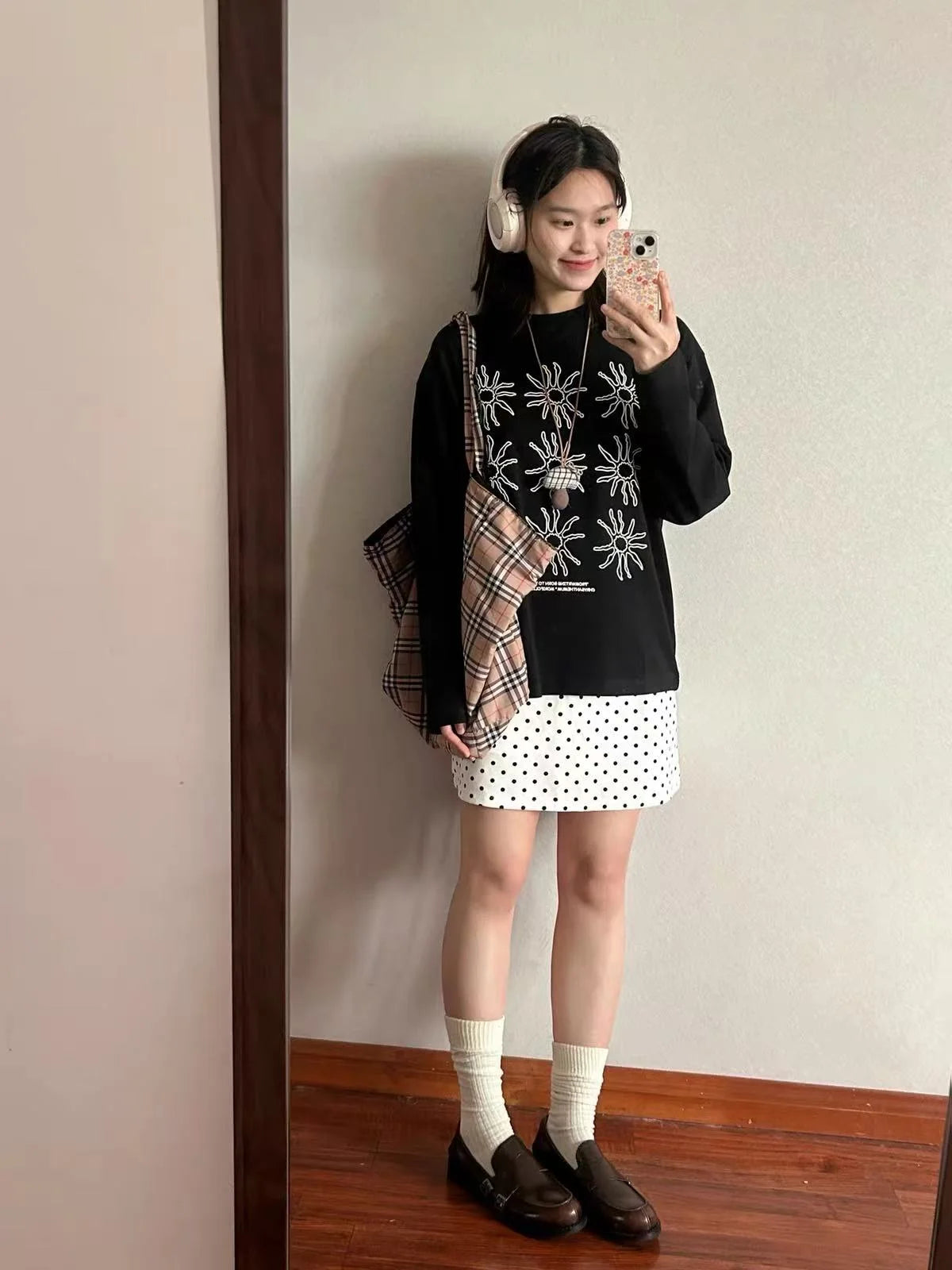 Polka Dot Stand Collar Oversized Sport Jacket OL2212