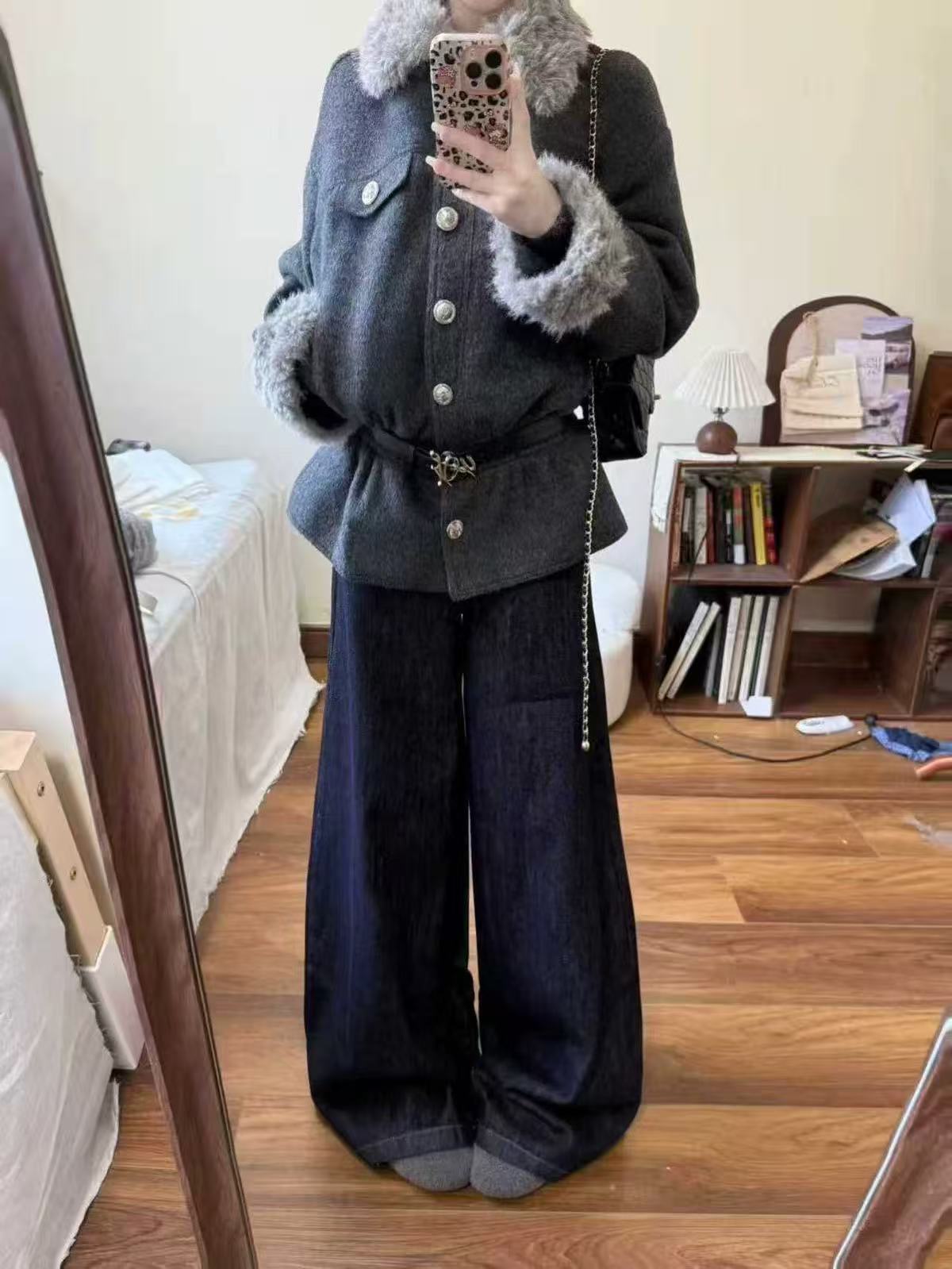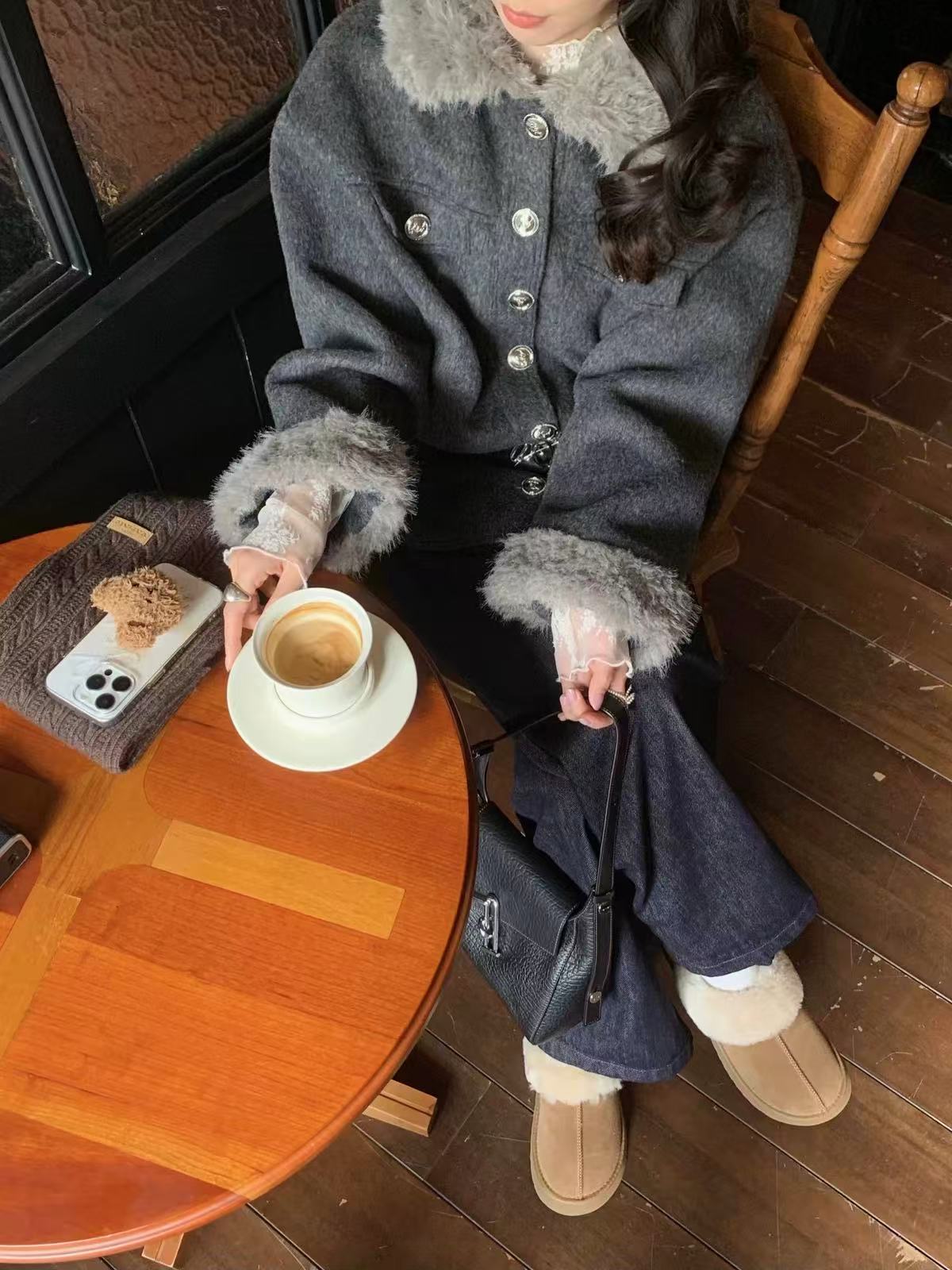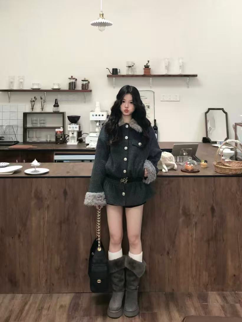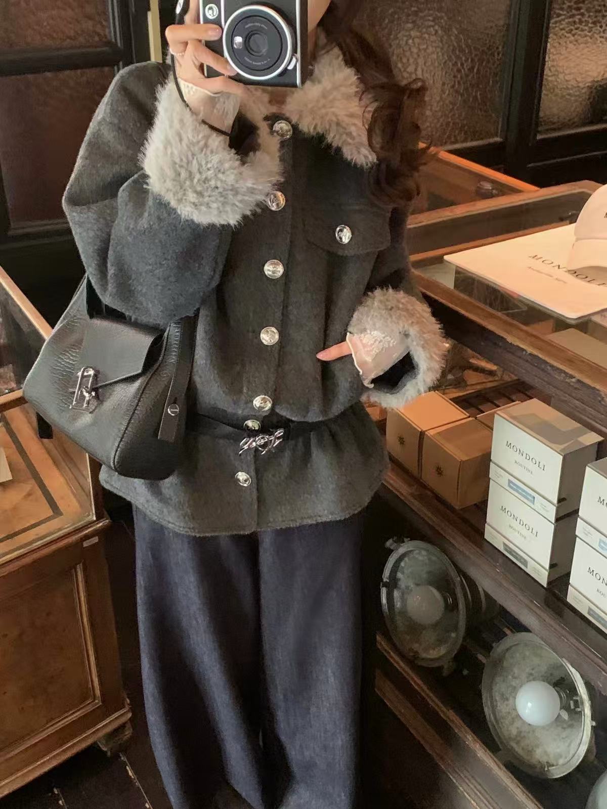 Vintage Suede Cross Faux-Fur Hooded Puffer OL2028