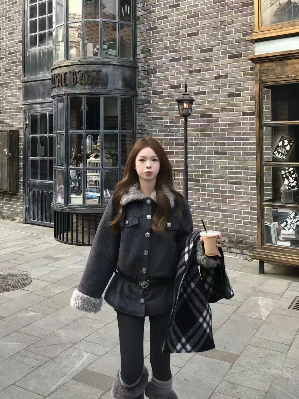 Star Print Cat Ear Padded Jacket with Removable Fur Collar OL2057