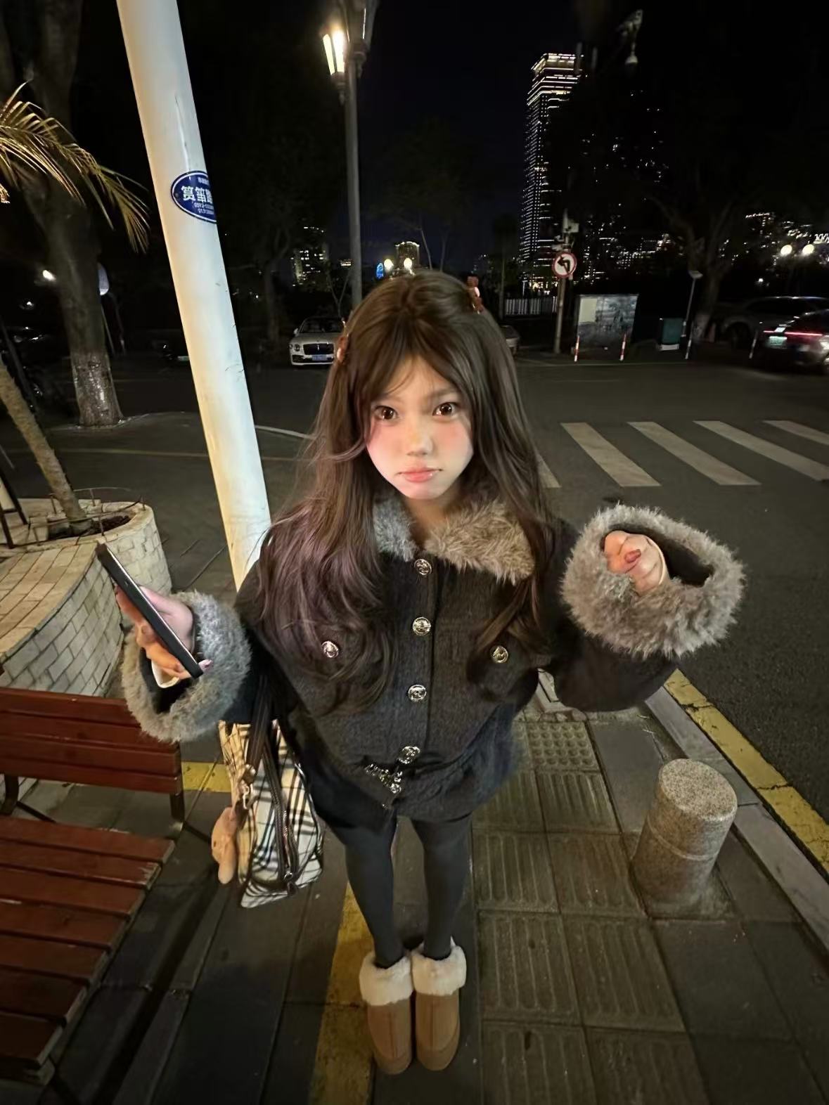 Star Print Faux Fur Hooded Puffer Jacket OL2029