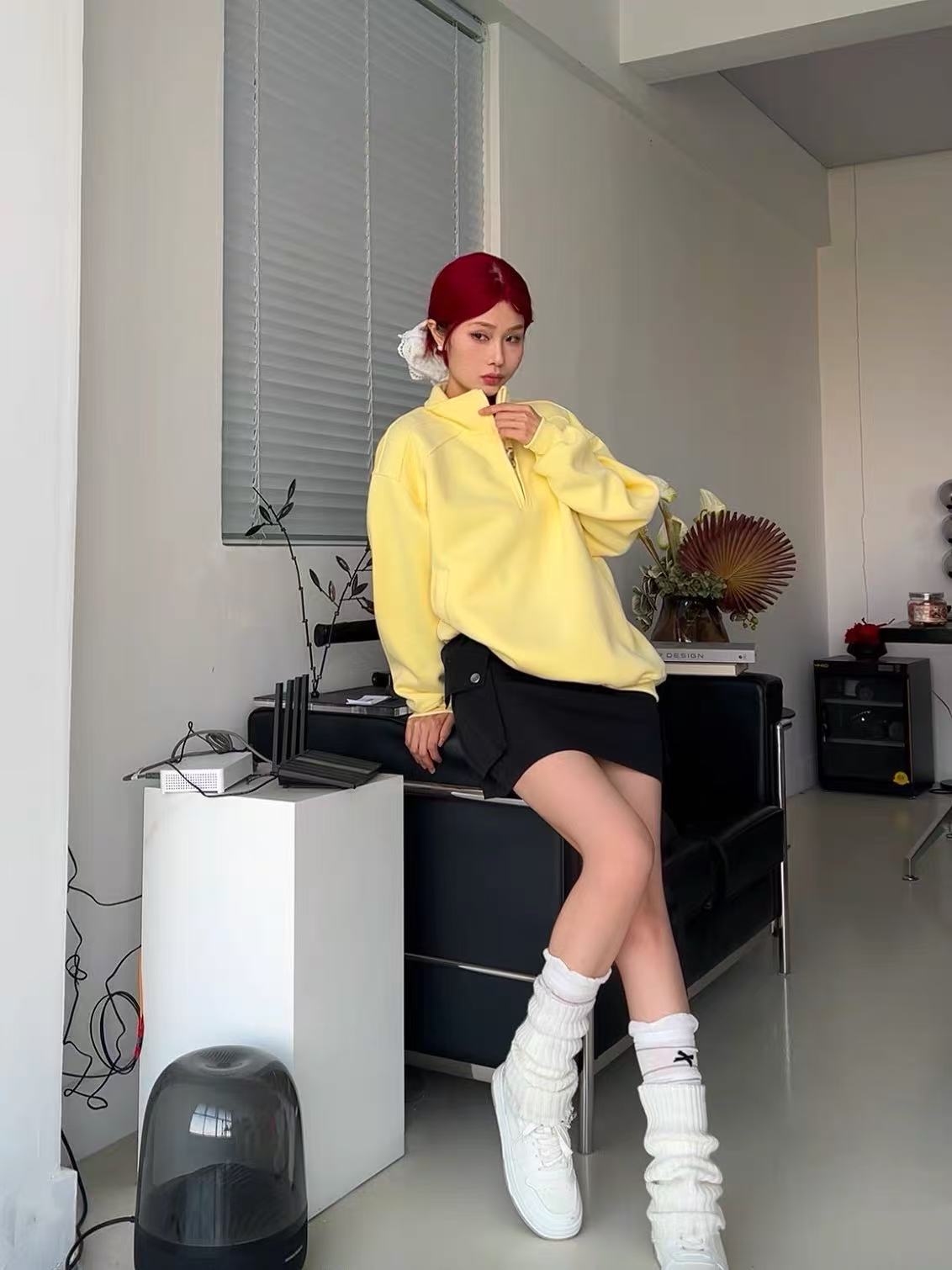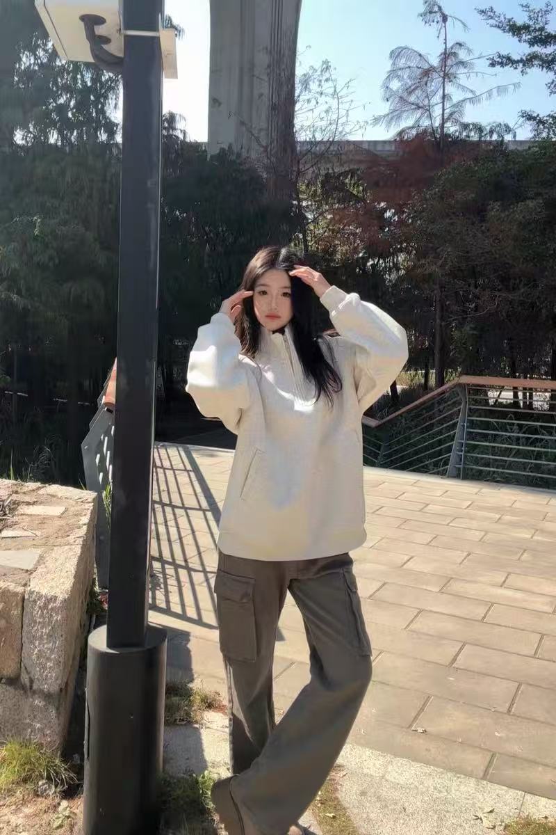 Half-Zip Stand Collar Sweatshirt with Relaxed Fit   OL1991