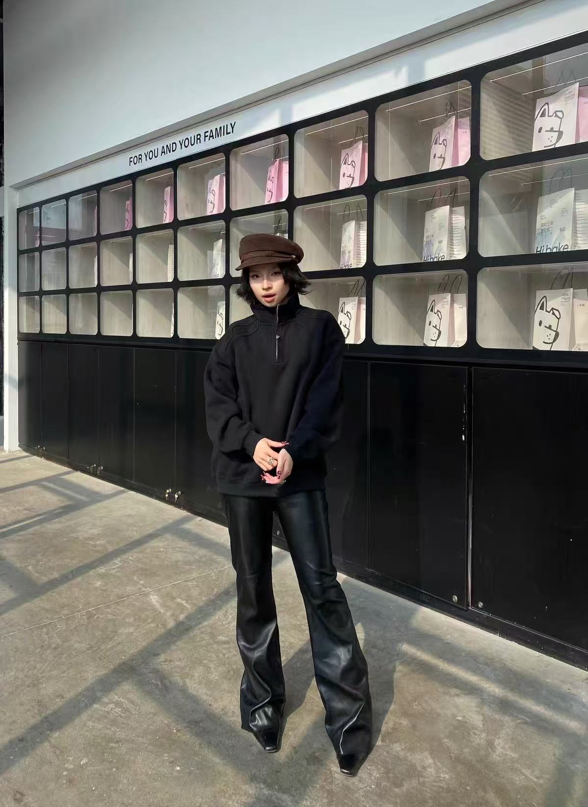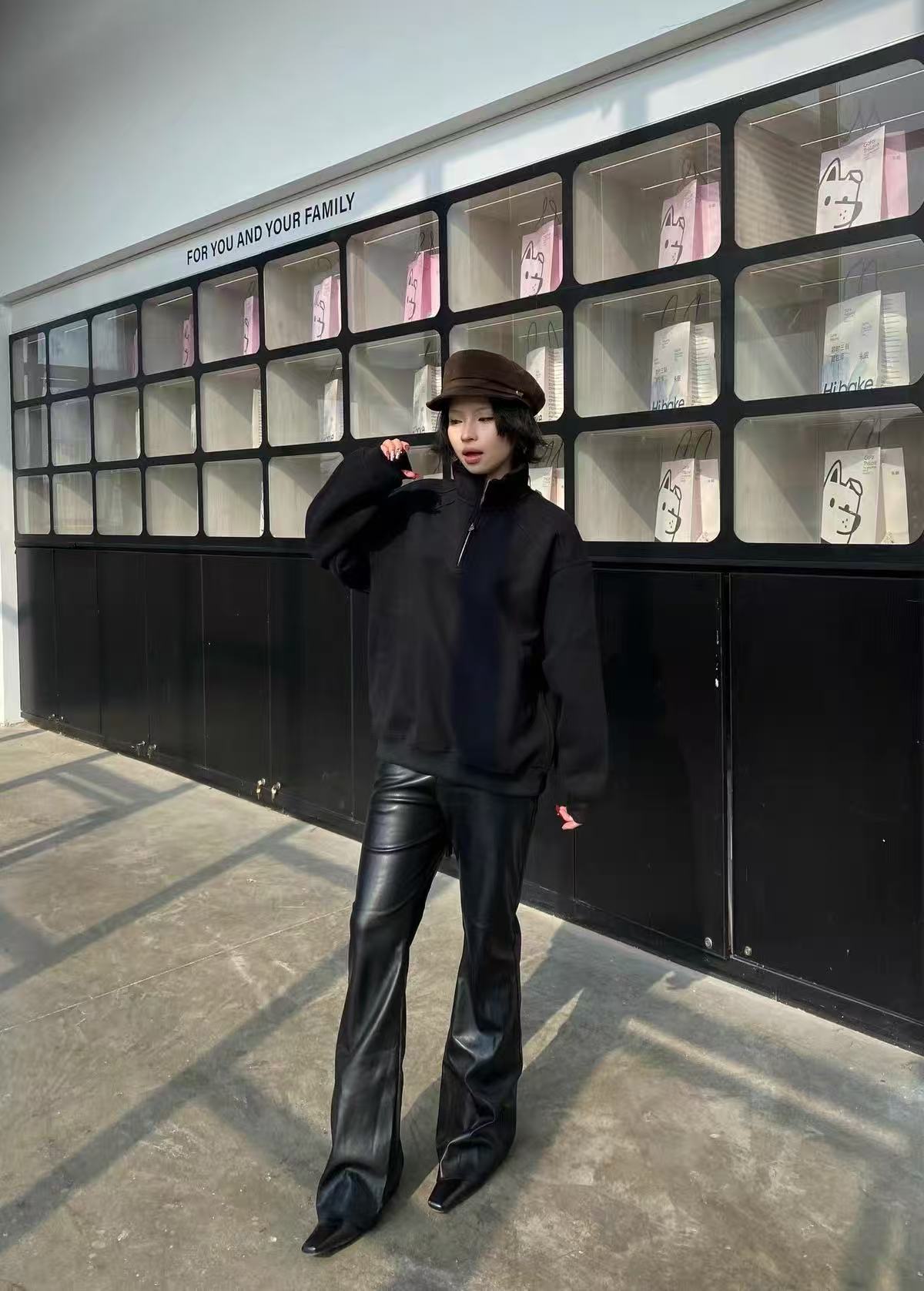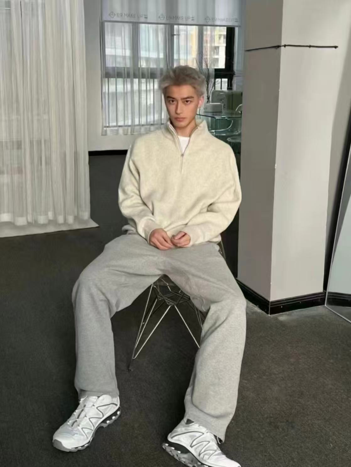 알맞은 탄력과 부드러움을 가진 코튼 혼합 소재의 하프 Zip 스웨트.