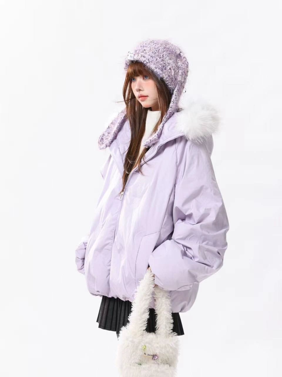 Faux Fur Collar Removable Bunny Ear Hooded Padded Jacket OL2067