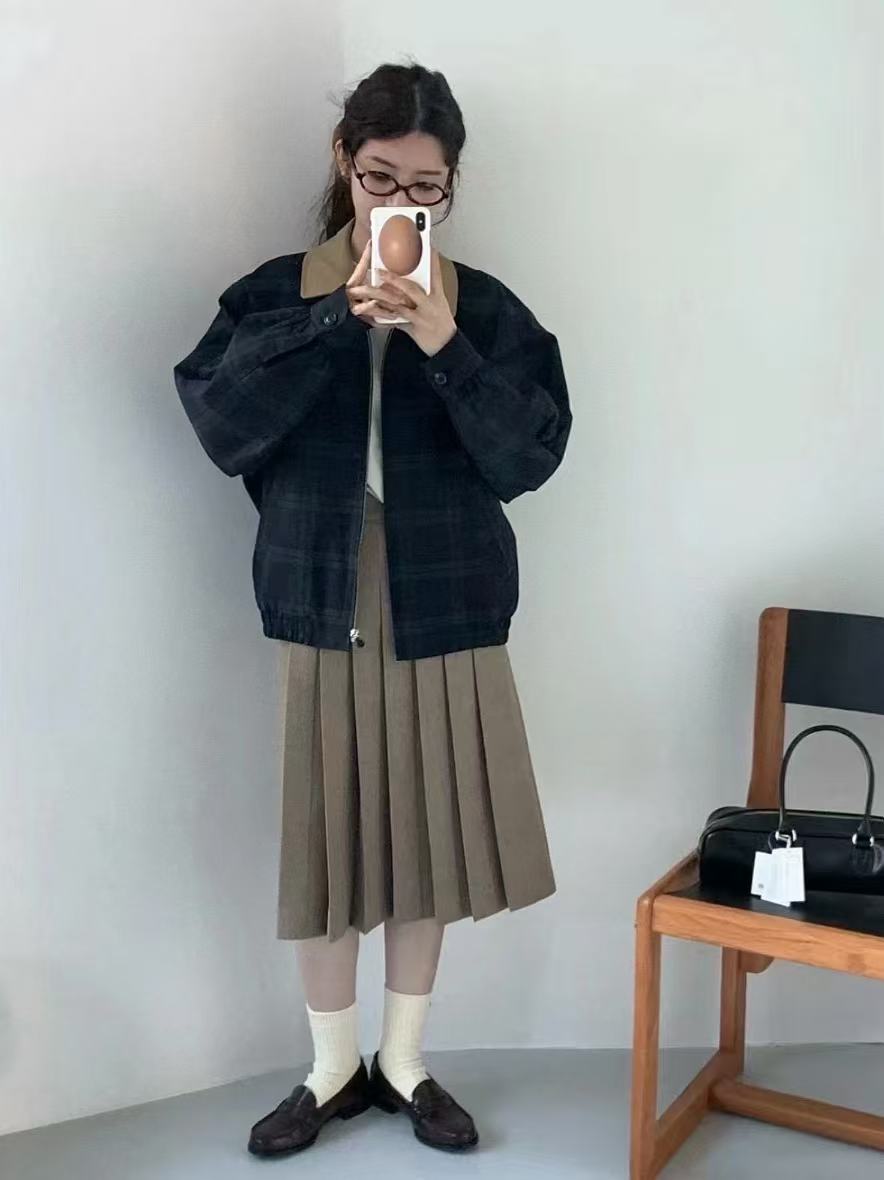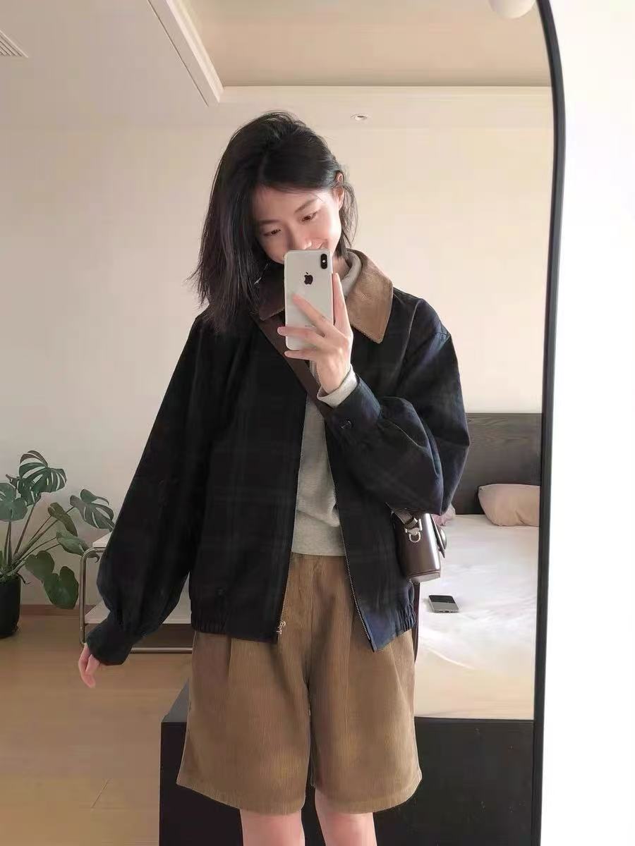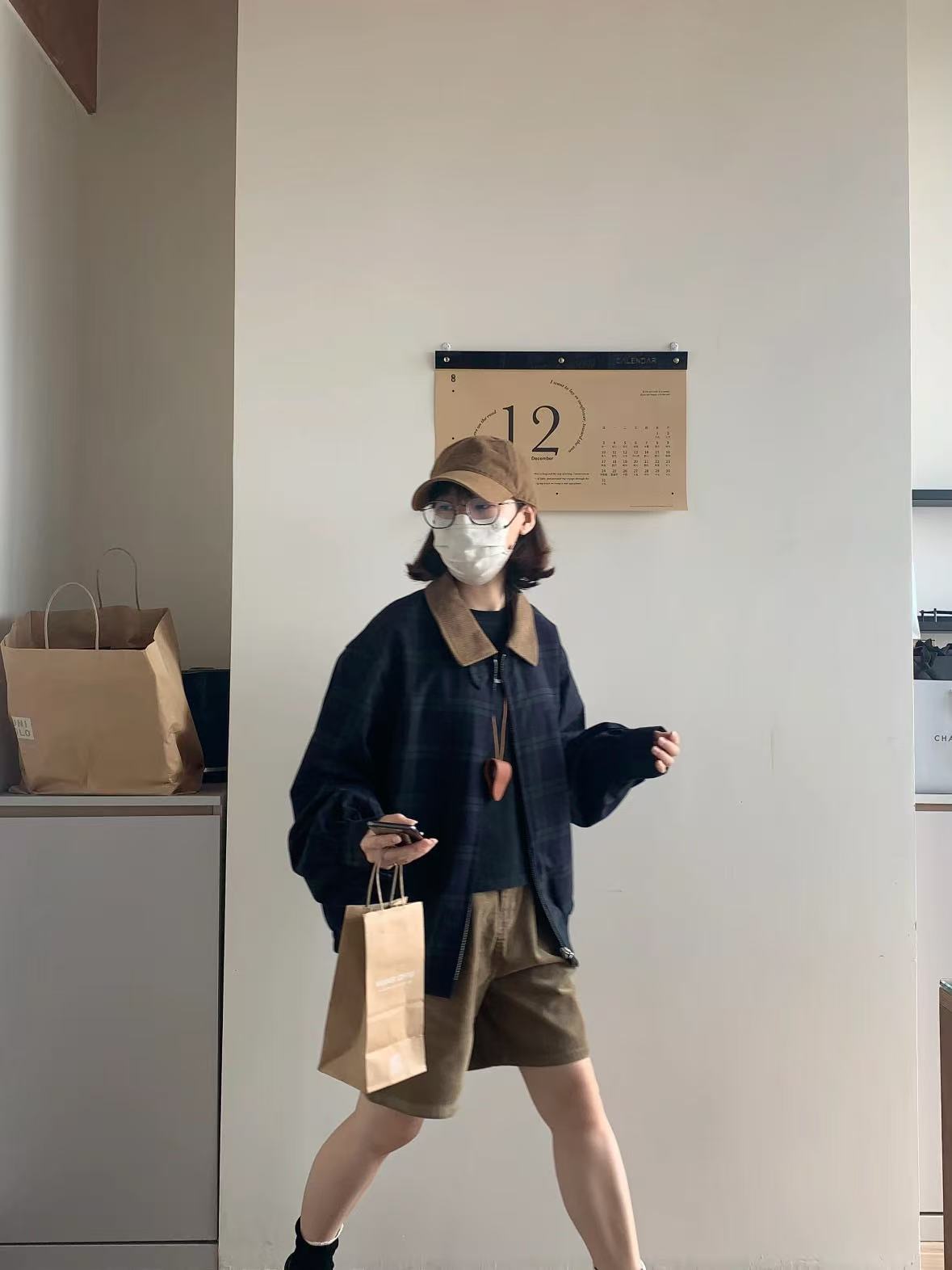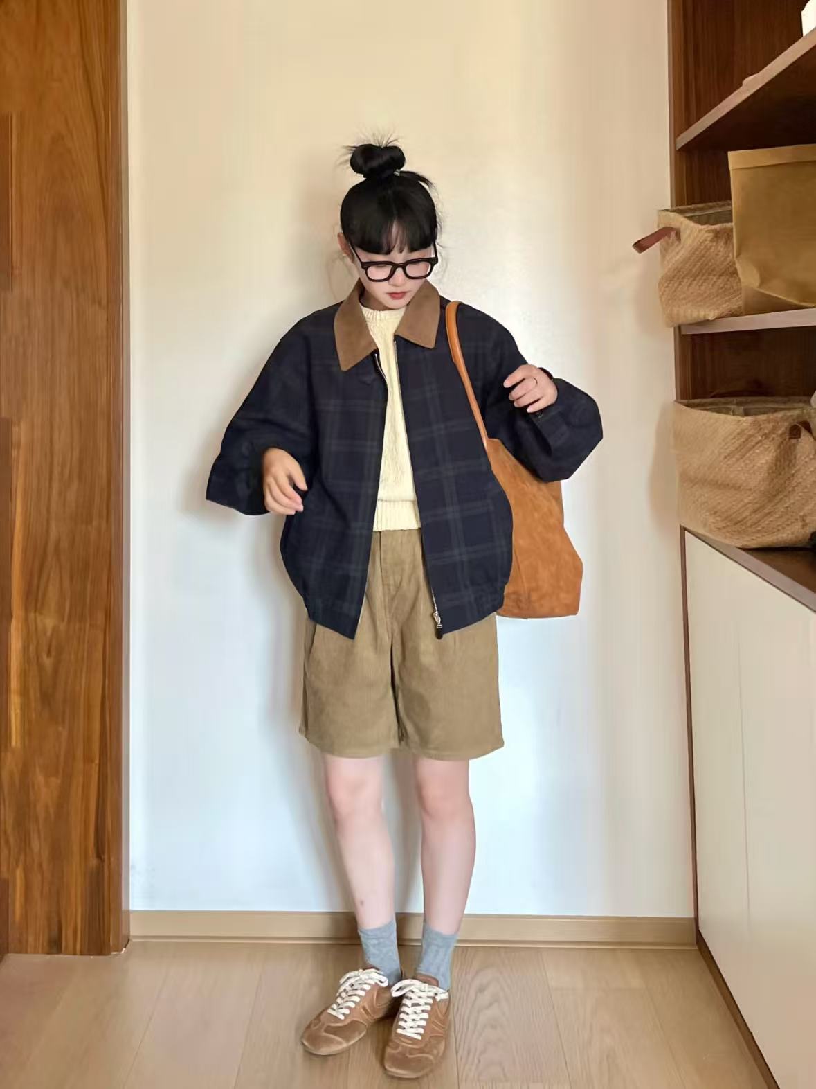 コーデュロイ生地のあたたかみと、チェックのカジュアルな雰囲気が絶妙にマッチ。