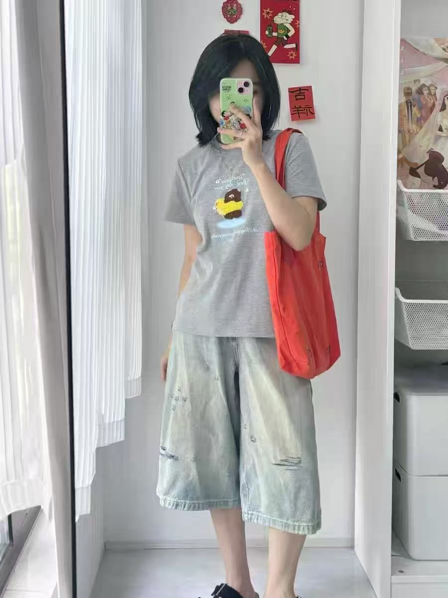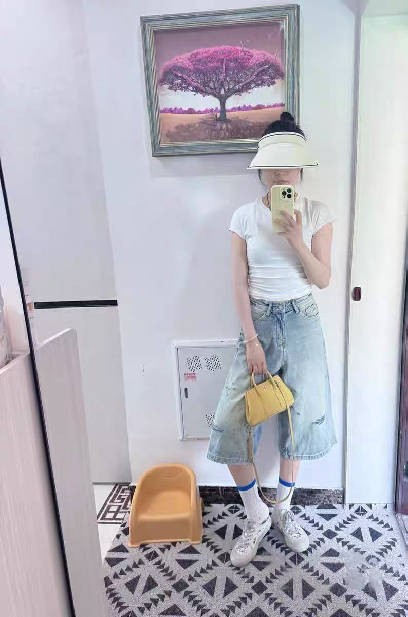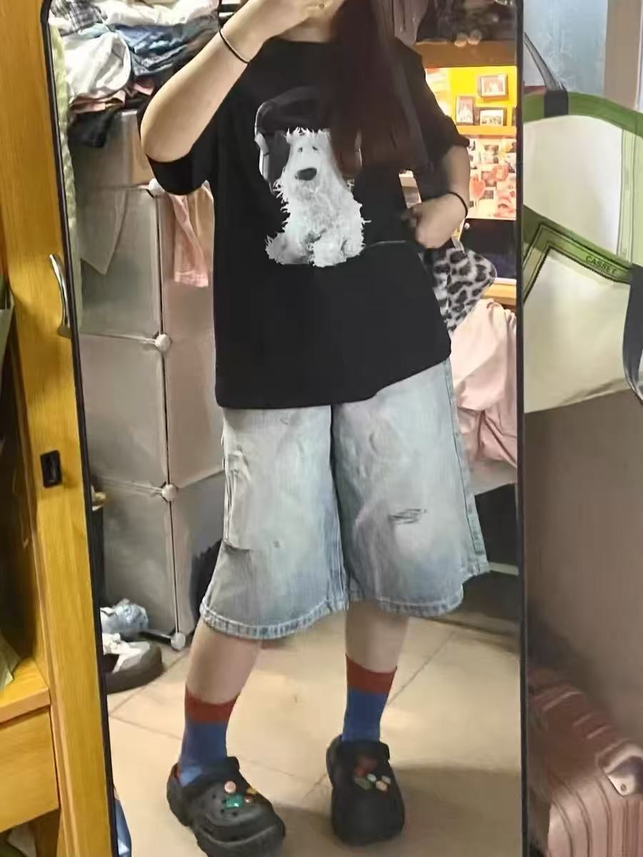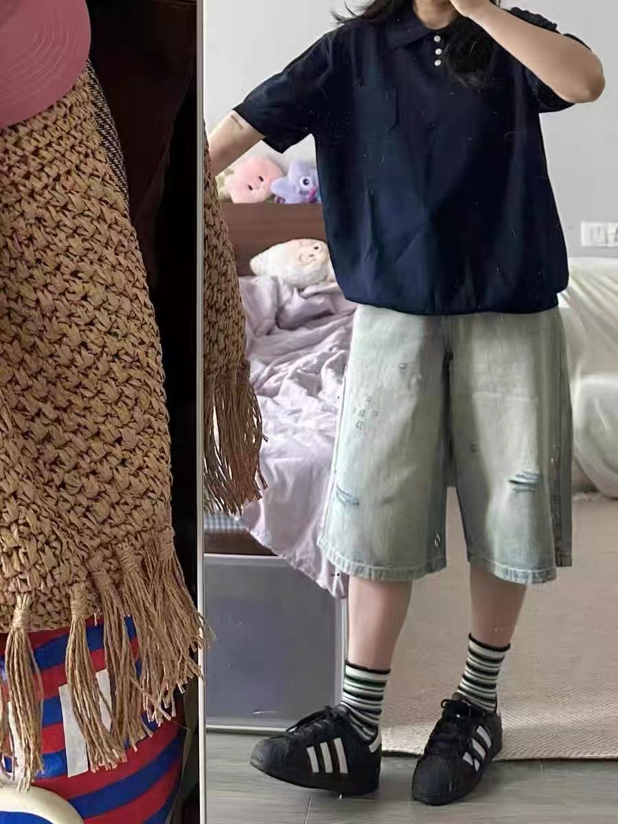 ダメージ加工 デニムショートパンツ レディース ワイド 夏用