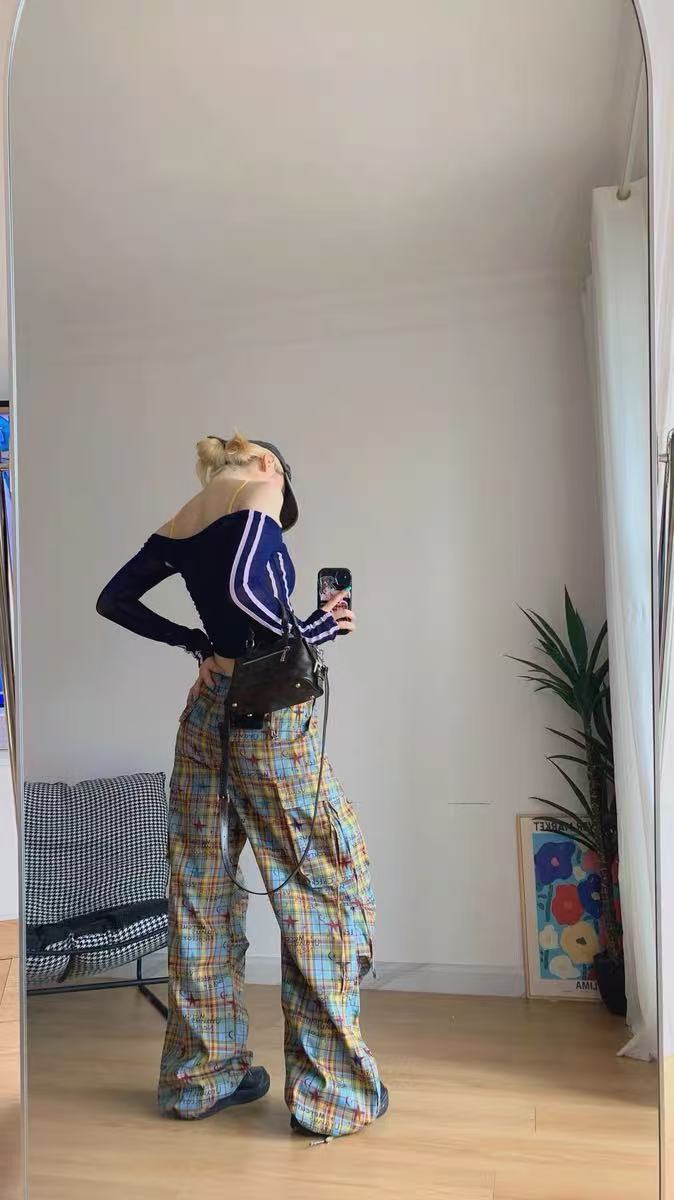 デザインカーゴパンツ グラフィティチェック ワイド
