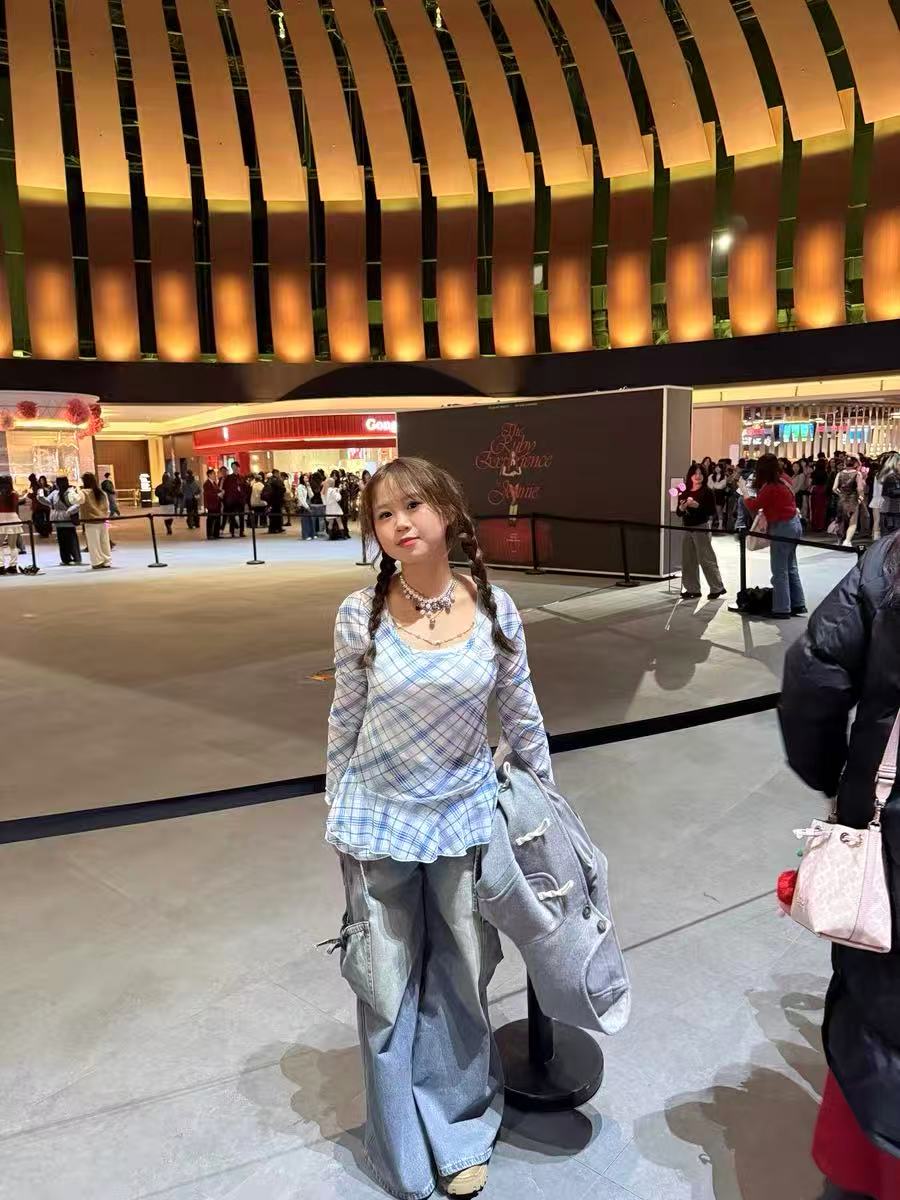 ハイウエストとリボンデザインが魅力のデニムワイドパンツ。