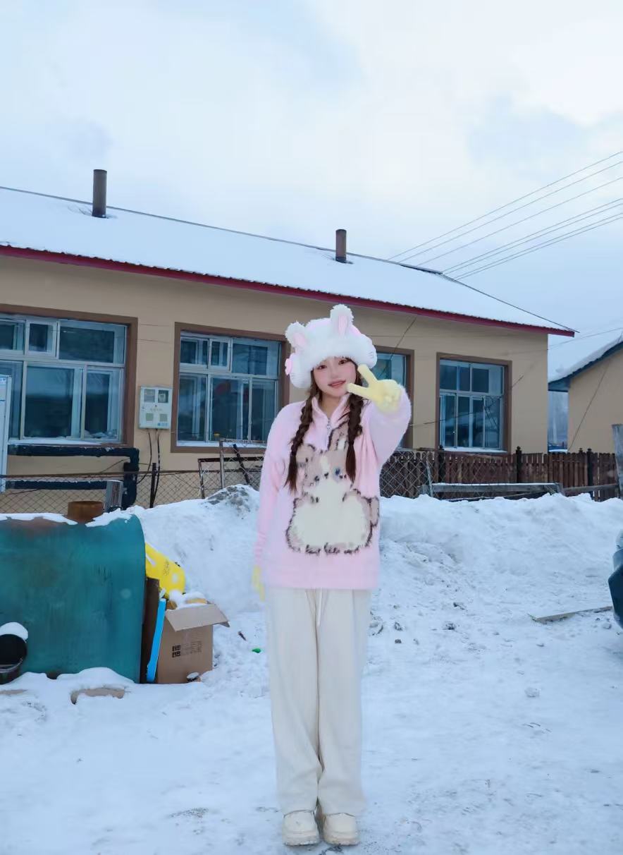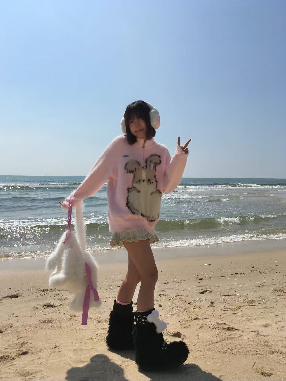 愛らしいうさぎモチーフのデザインで、冬のスタイリングにほっこり感をプラス。