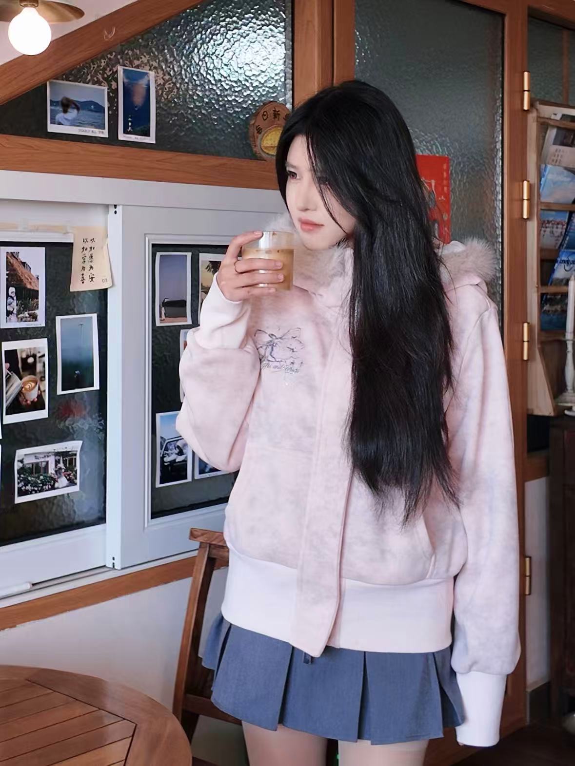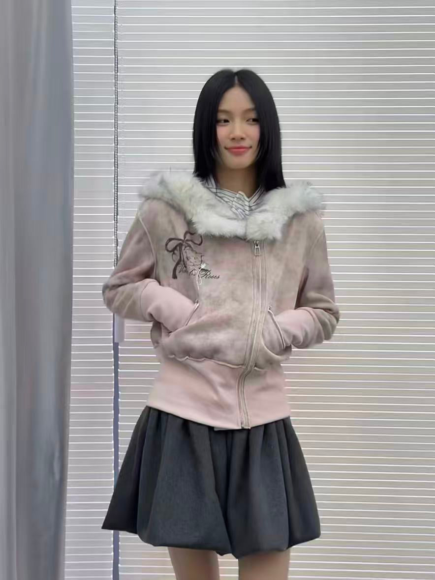 ふんわりとしたフェイクファーがアクセントになった、デザイン性の高いフーディ。
