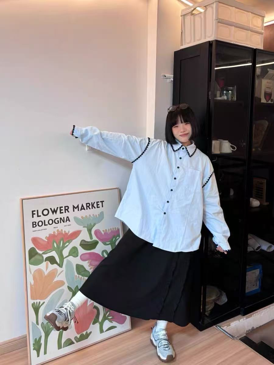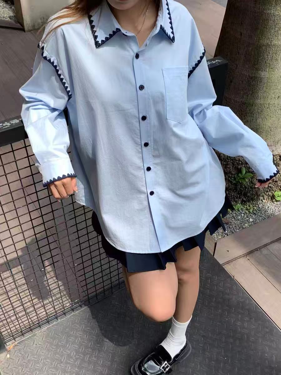 カジュアルから学院風スタイルまで幅広く合わせやすく、1枚でトレンド感あるコーデに仕上がります。