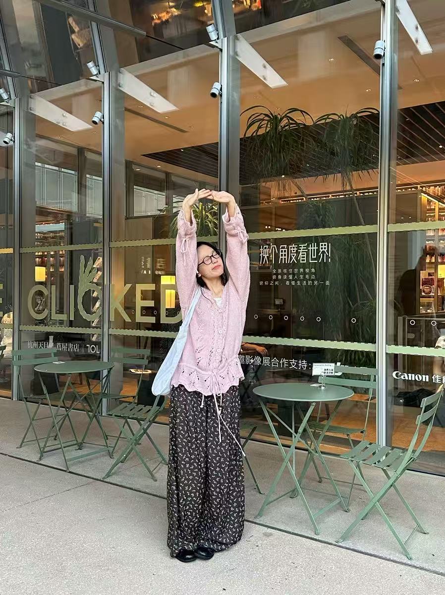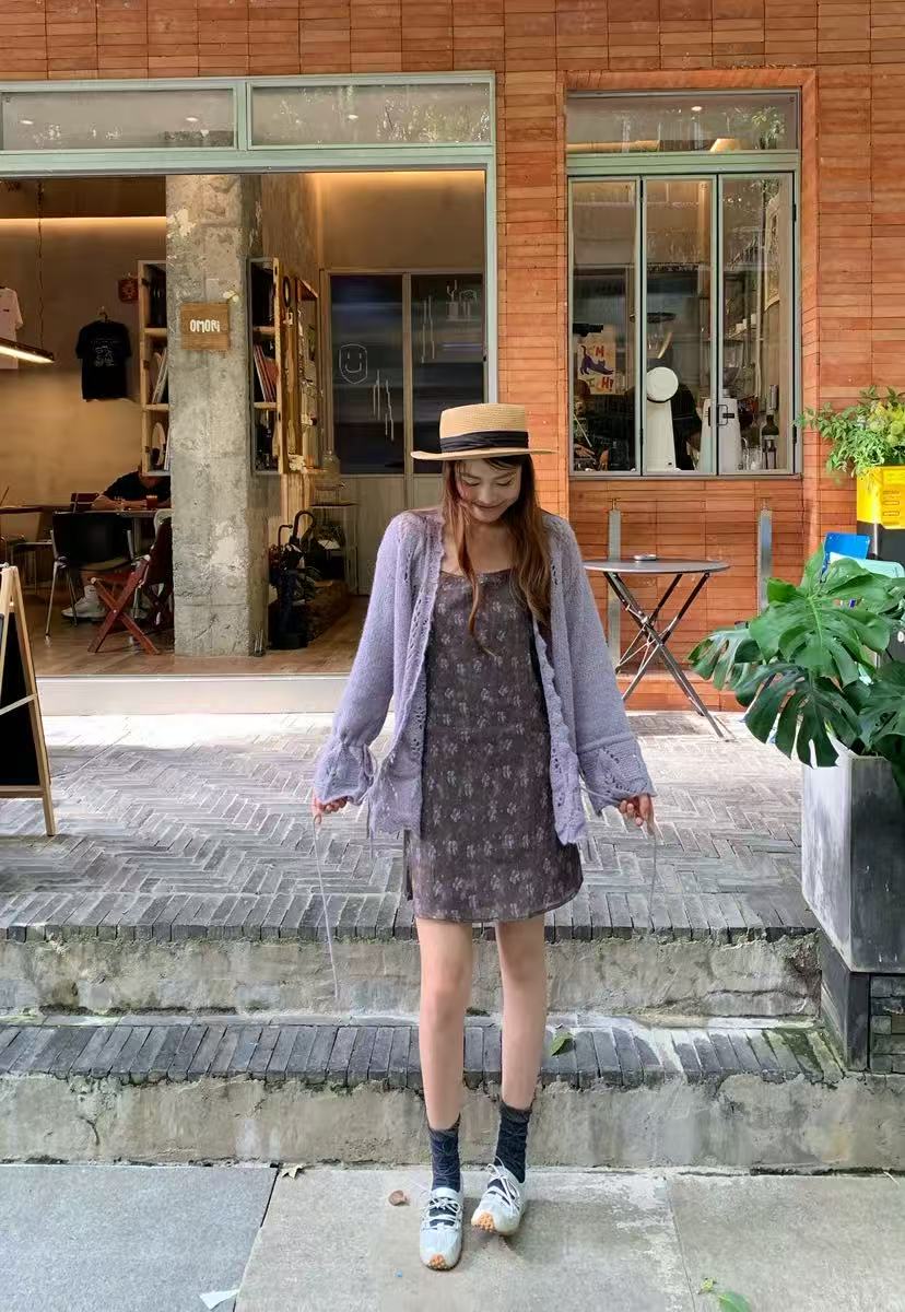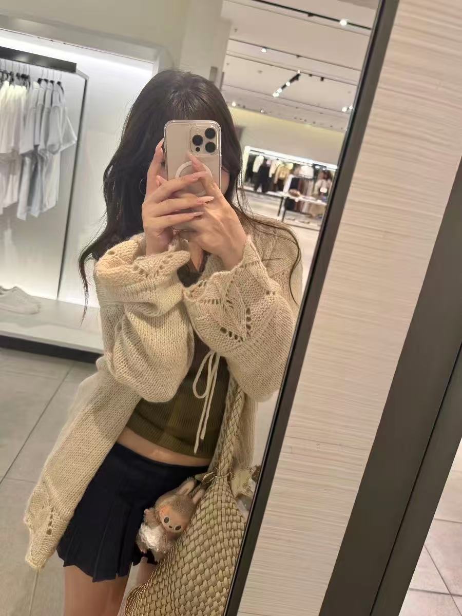 やわらかな透かし編みが女性らしさを引き立てるドロストカーディガン。