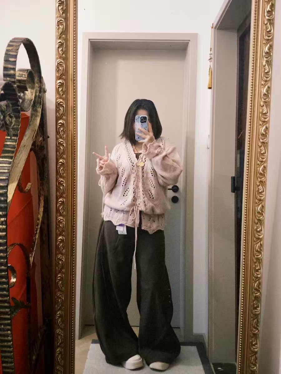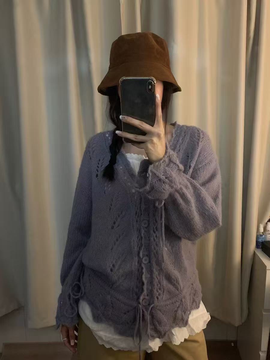 透かし編みドロストカーディガン ゆるシルエット