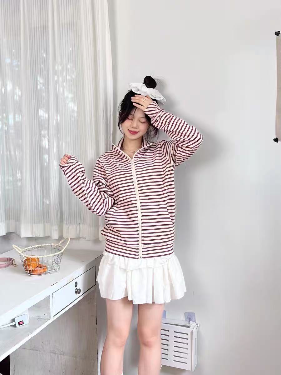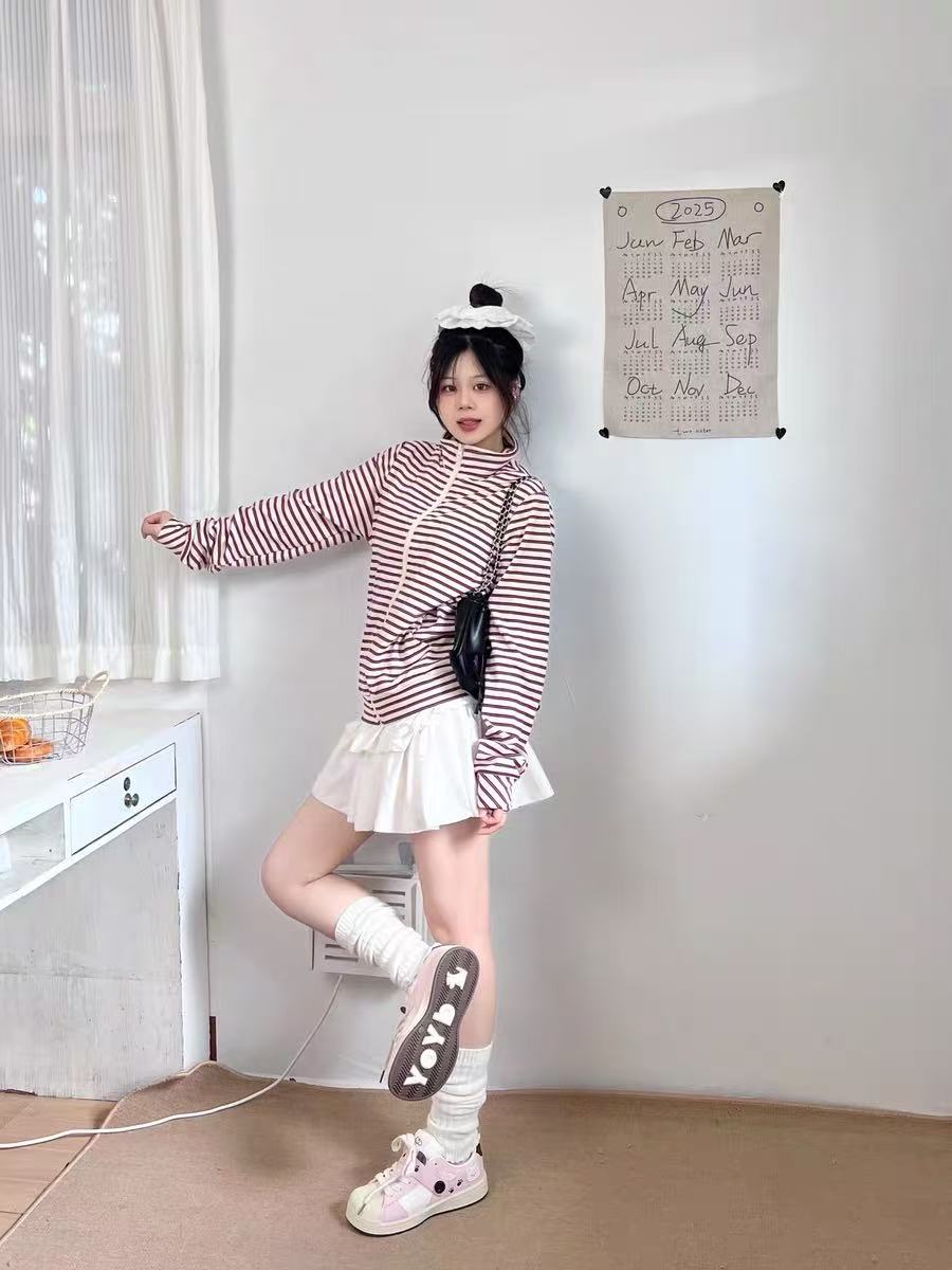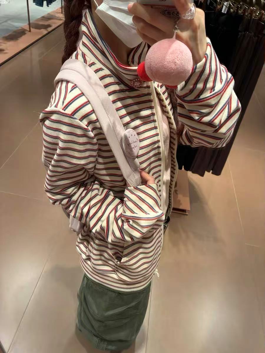 Badge Stripe High Neck Zip Sweatshirt OL2046