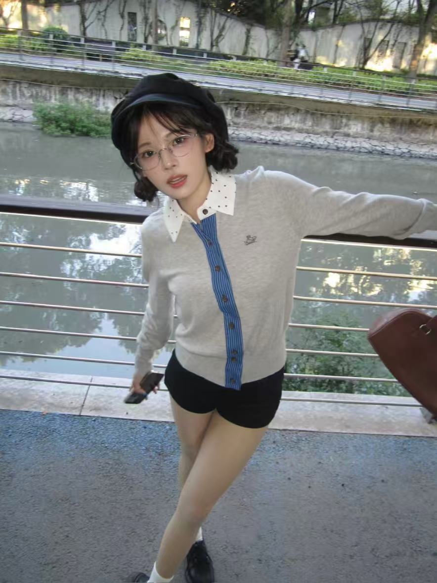 重ね着風のデザインでスタイルアップ効果を演出し、シルエットをすっきり見せます。