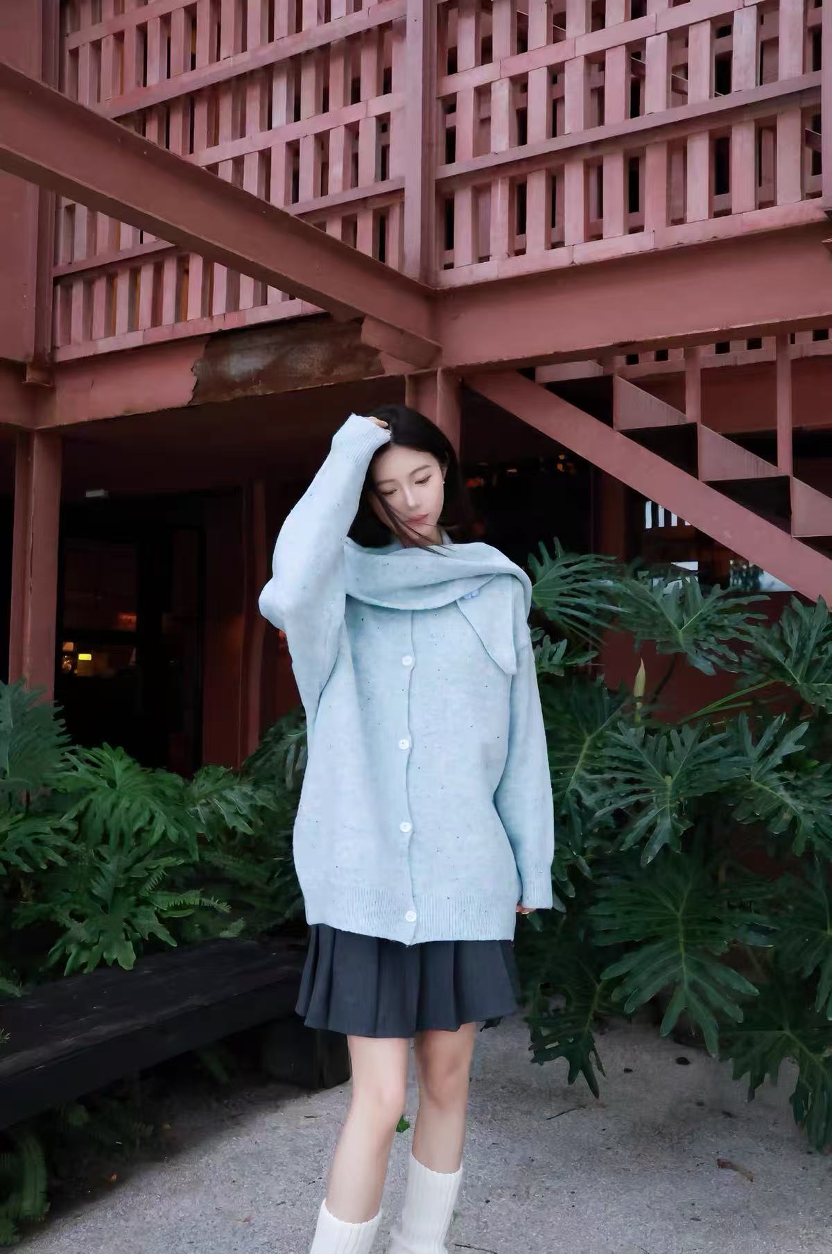 Confetti Dot Scarf Collar Cardigan  OL2066