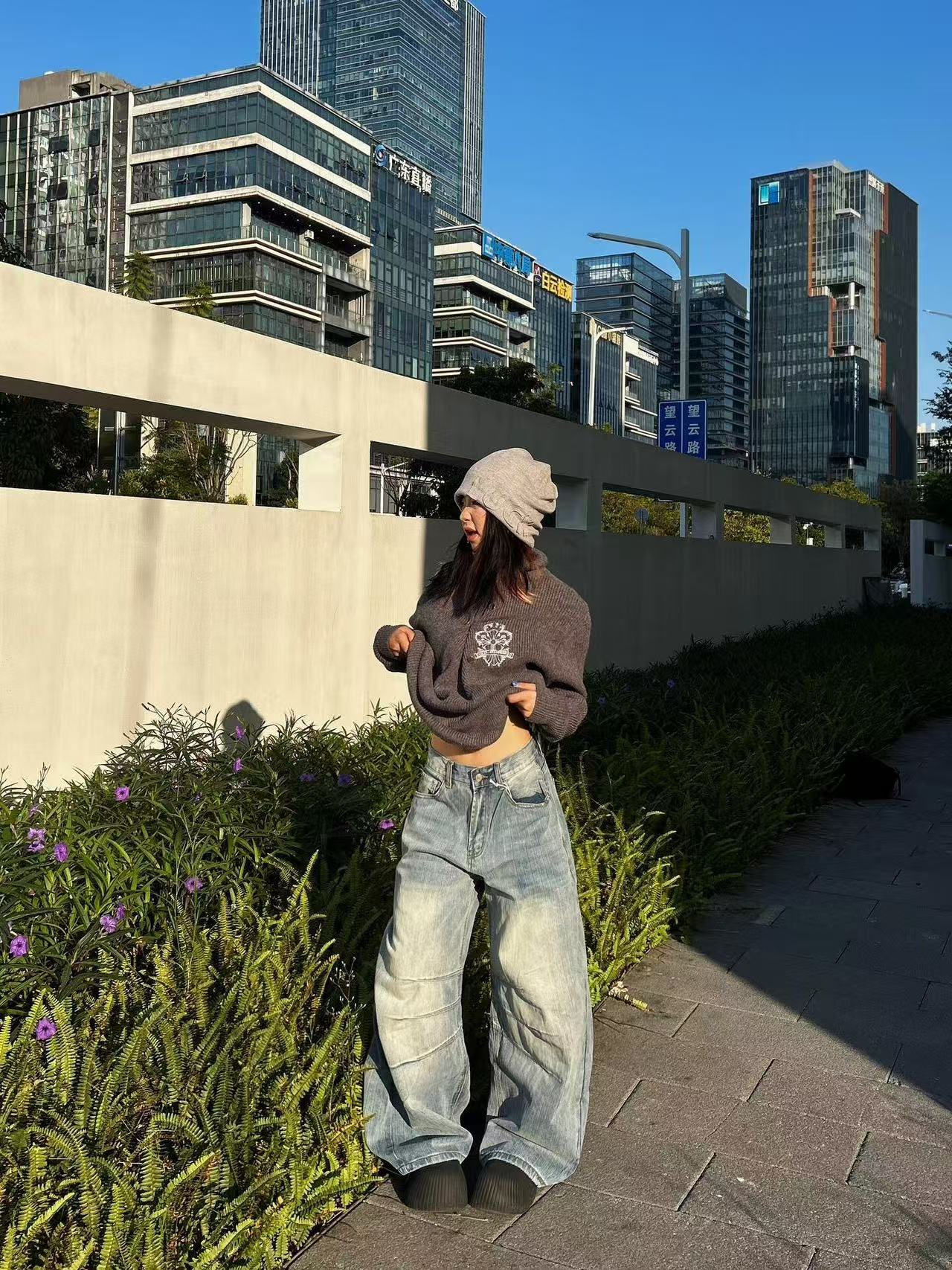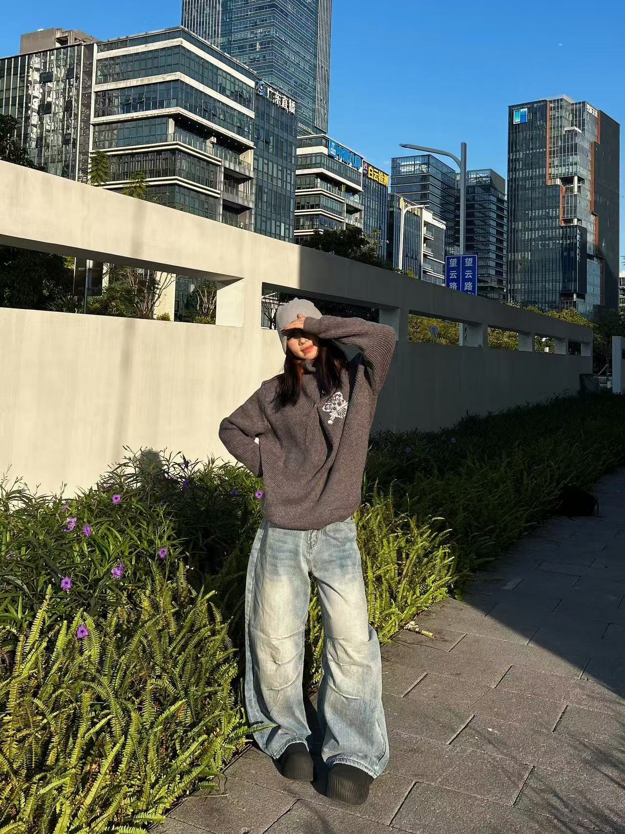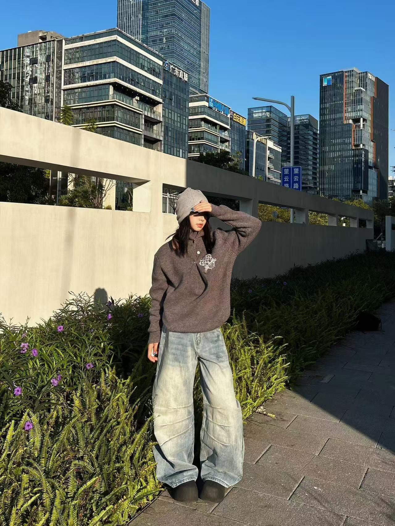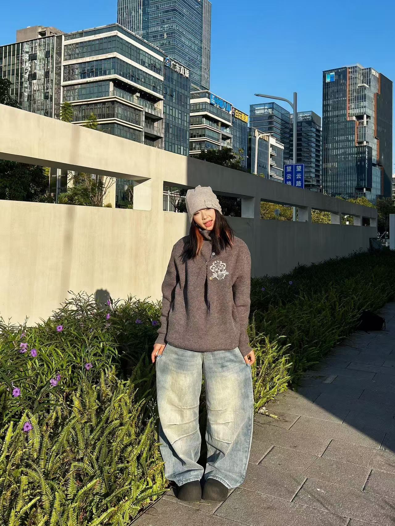 立体感のある不規則なタック編みと、さりげない刺繍ディテールが魅力のハイネックニット。