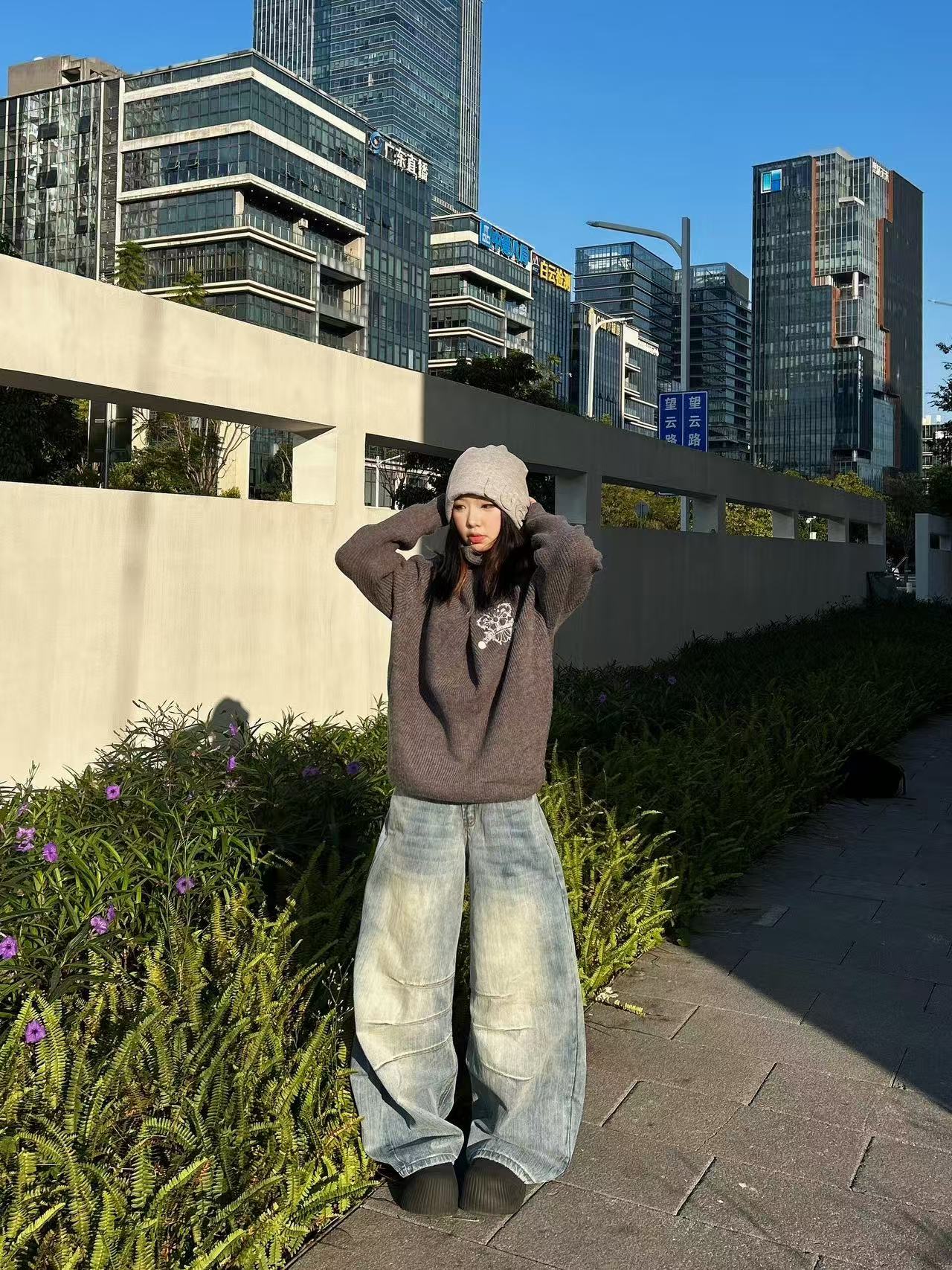 ゆったりとしたシルエットで抜け感をつくりつつ、首元はすっきりと上品に仕上げています。