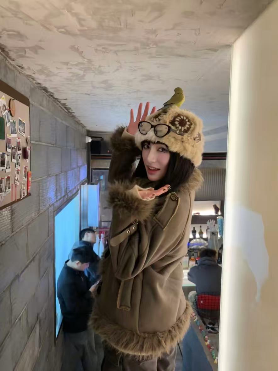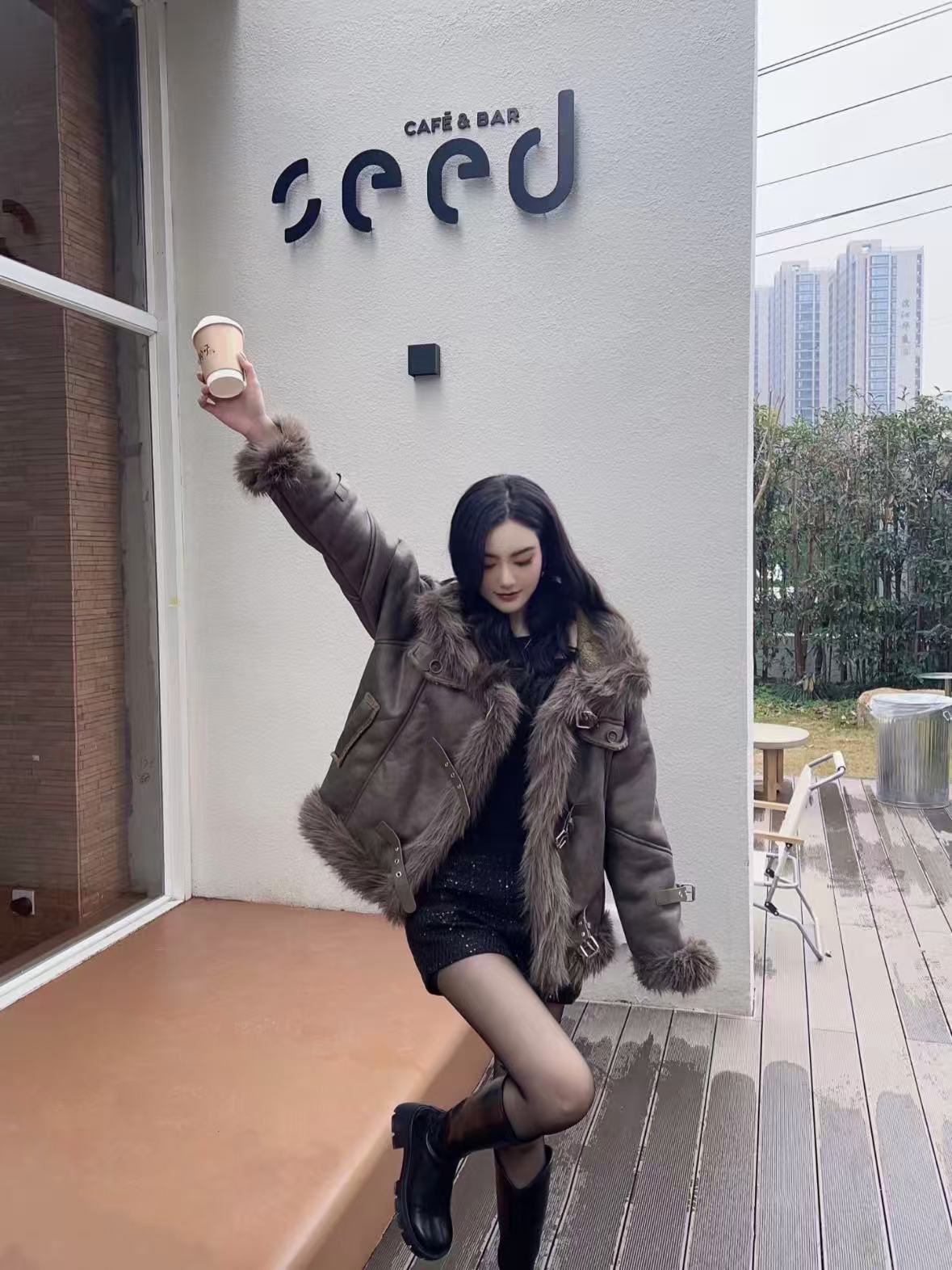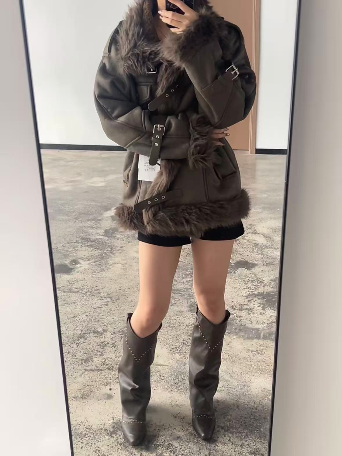 肌触りの良いフェイクスエードに、ふんわりとしたボア衿を合わせたデザインコットンジャケット。
