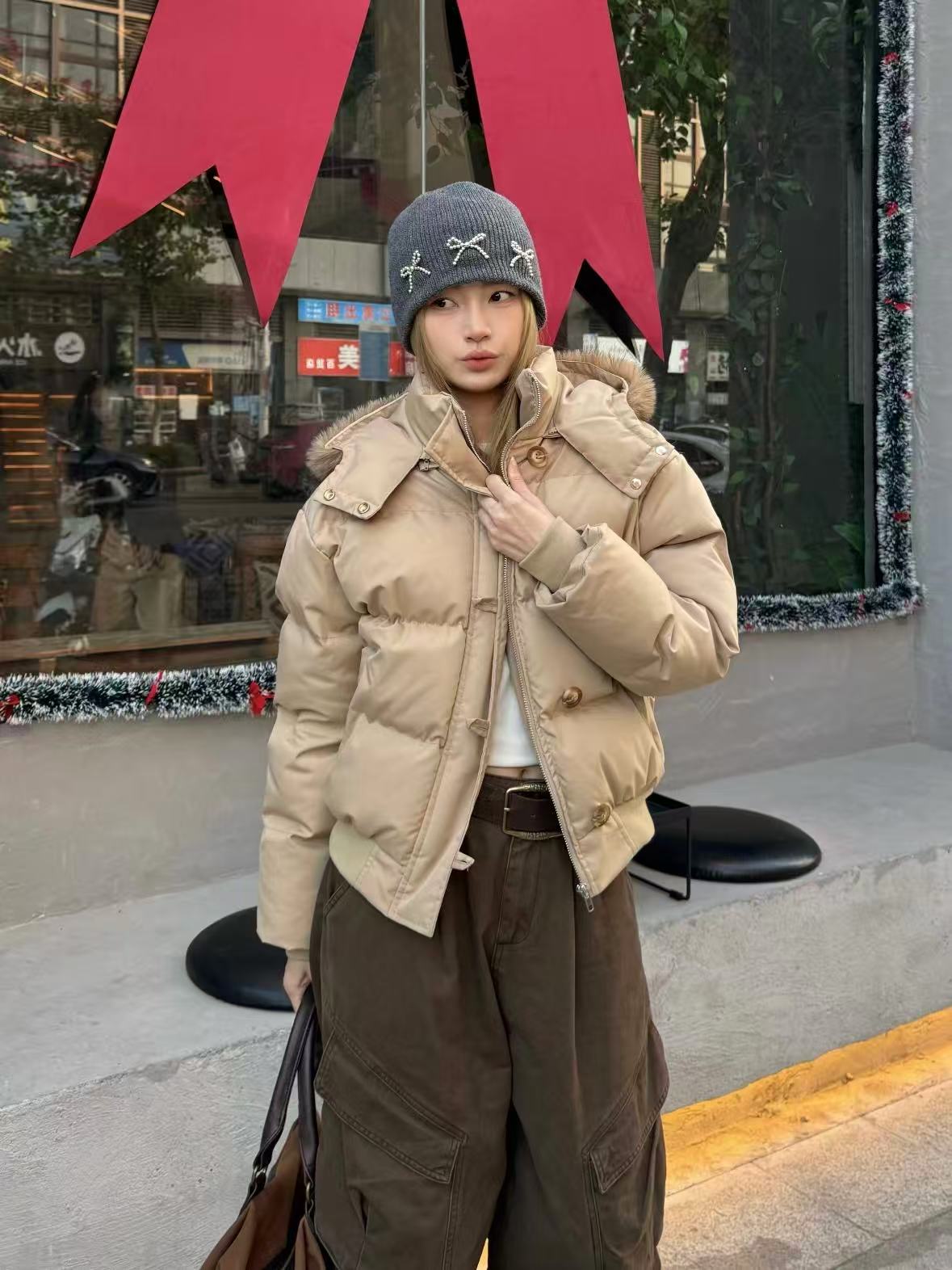 コンパクトなシルエットでカジュアルにもガーリーにも合わせやすく、軽くて暖かい着心地が魅力。