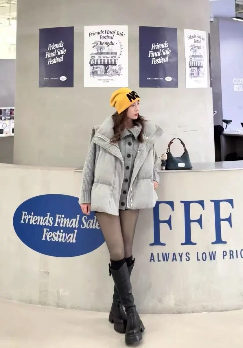 Vintage Suede Cross Faux-Fur Hooded Puffer OL2028