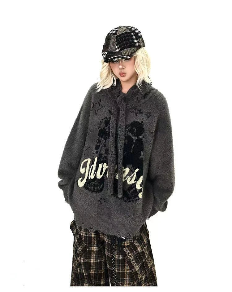 リラックス感のあるBFシルエットで仕上げた、フード付きニットトップス。