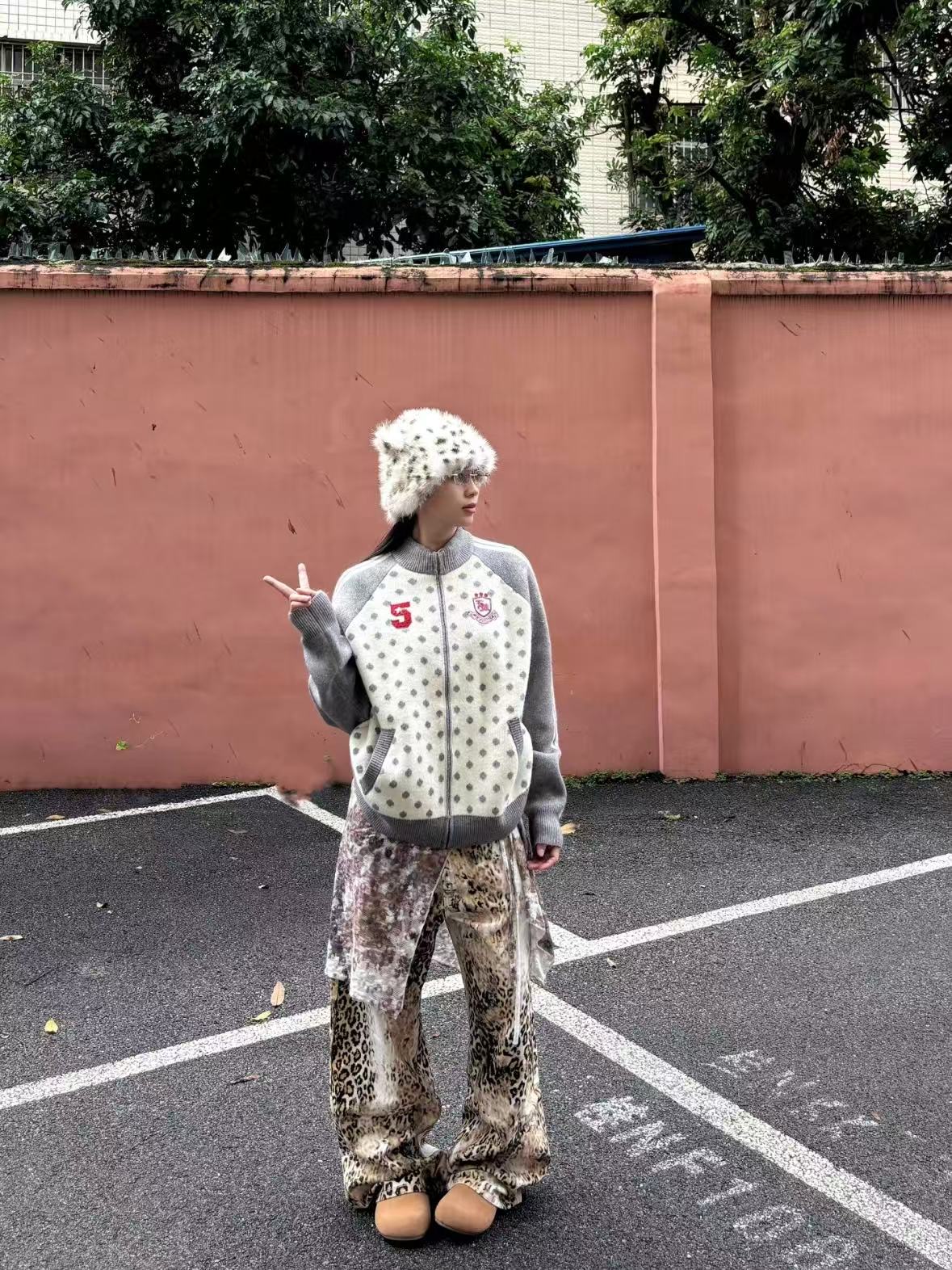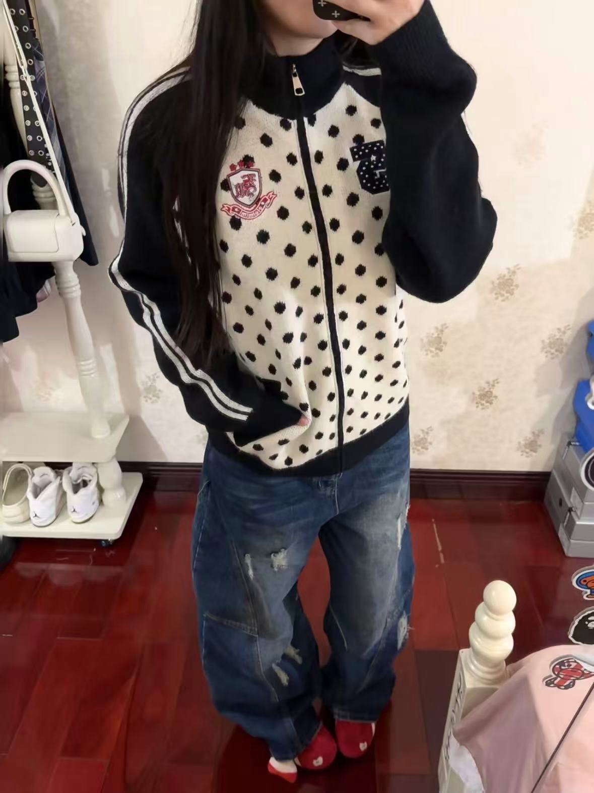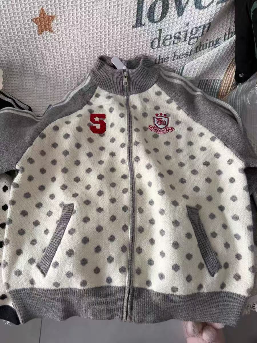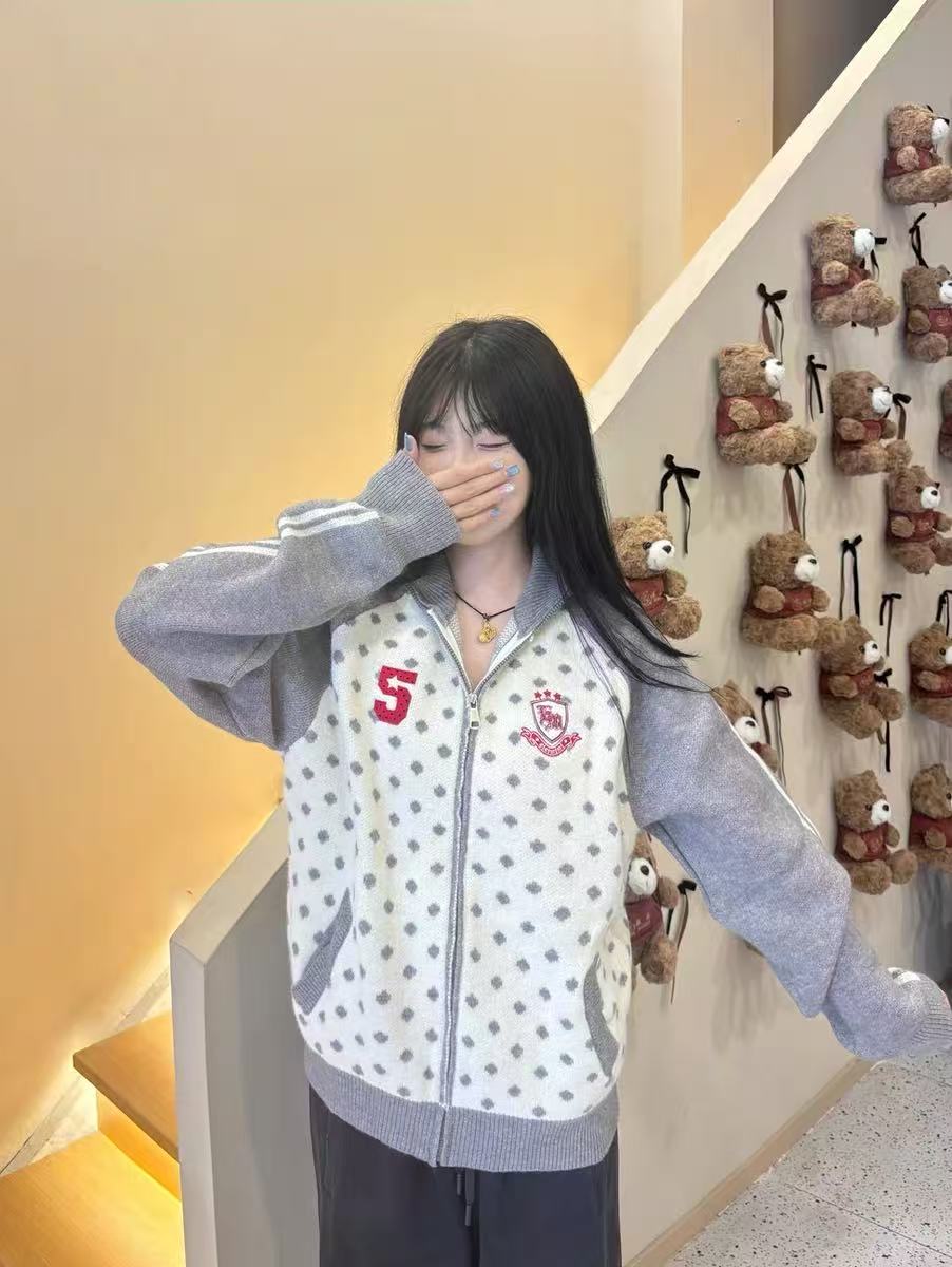 Polka Dot Appliqué Raglan Cardigan OL2038
