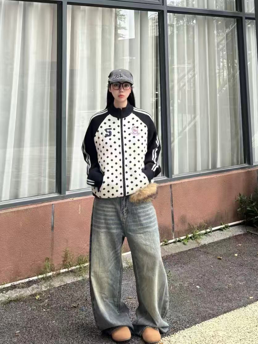 Retro Colorblock Stand Collar Zip Jacket OL2026