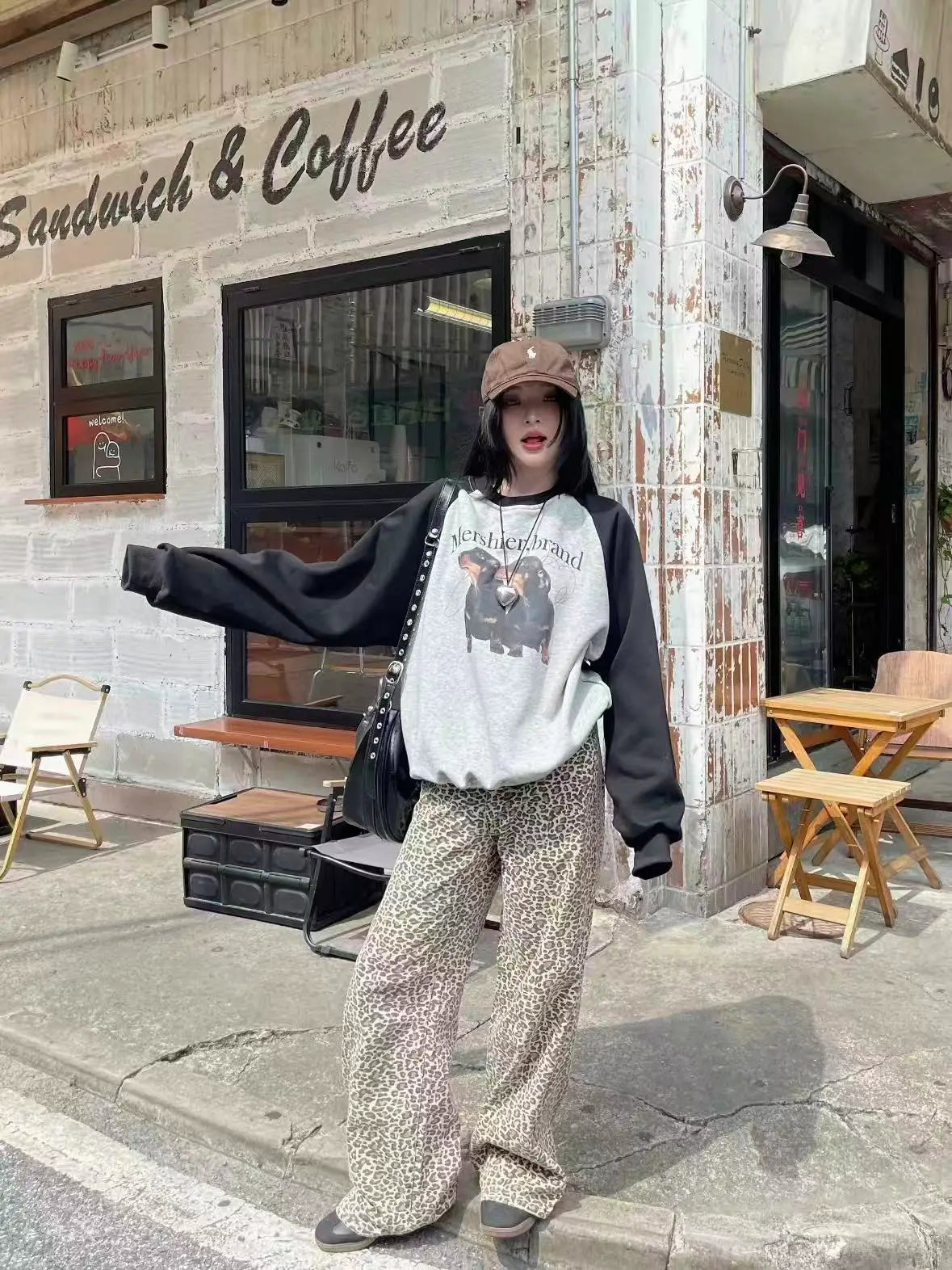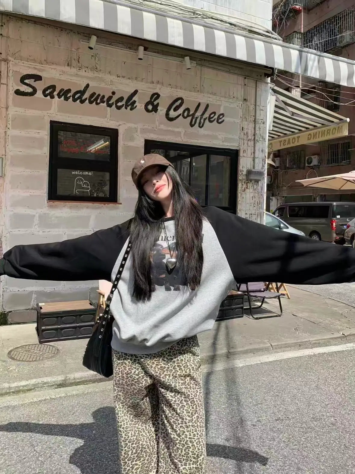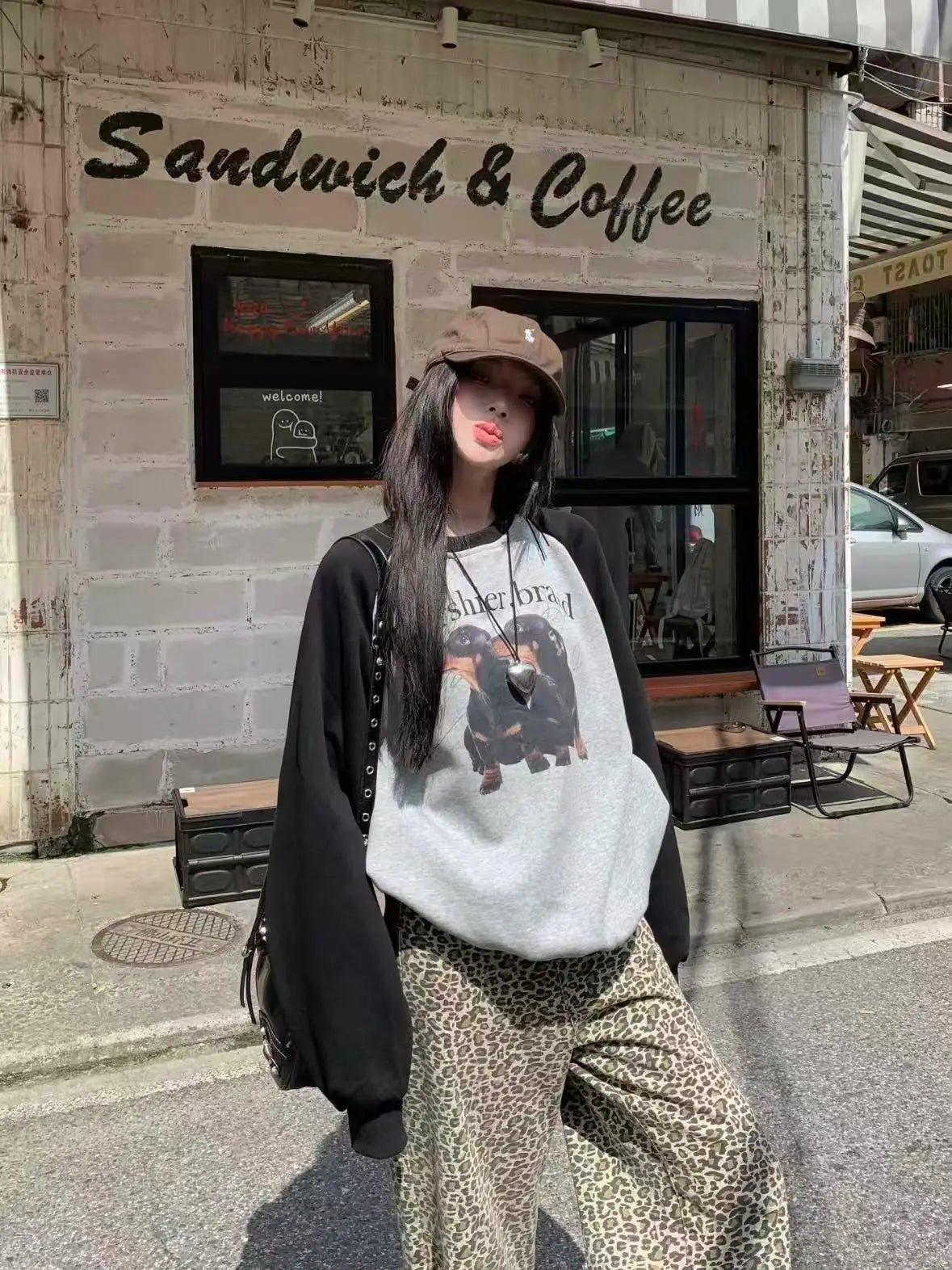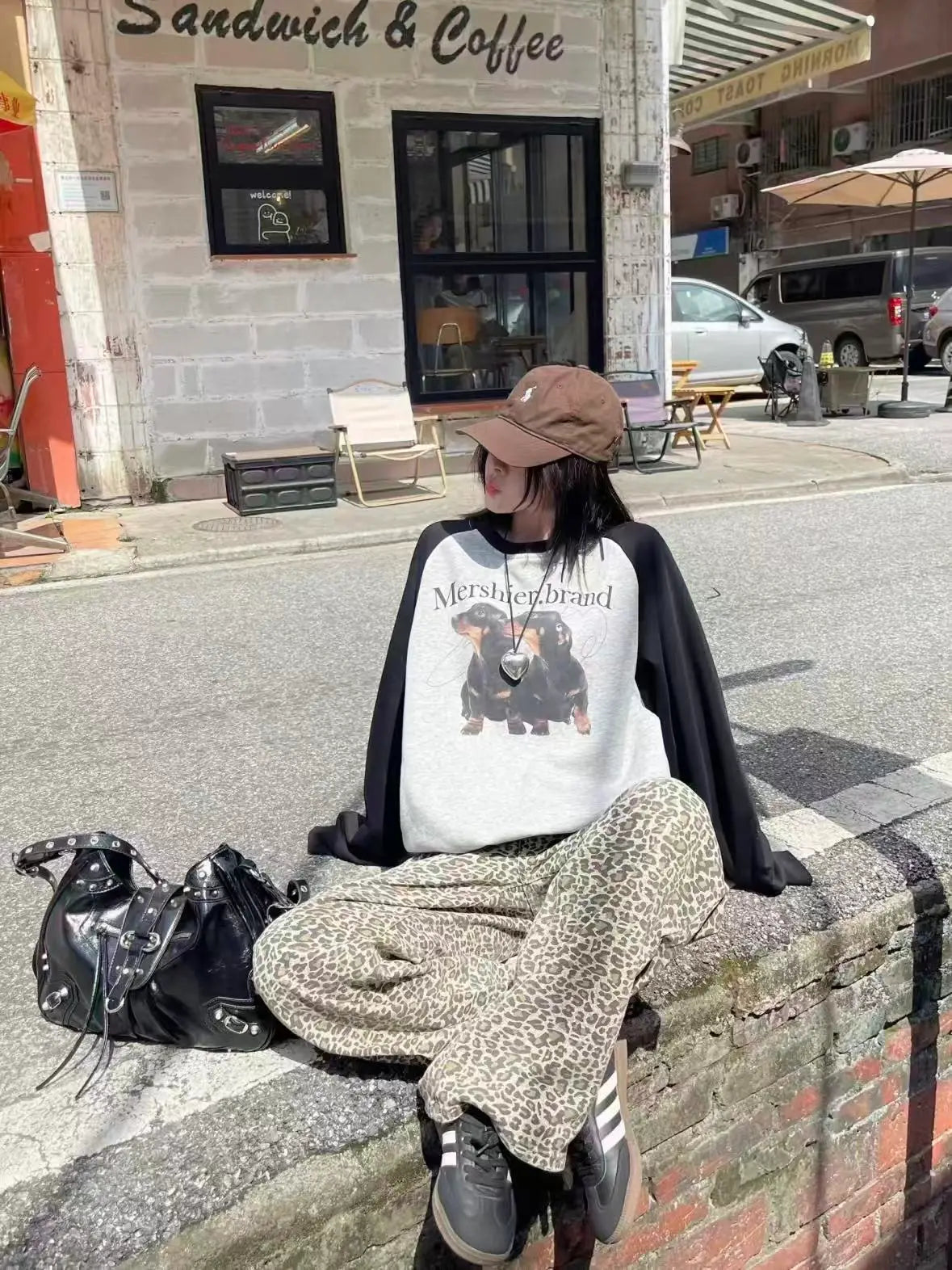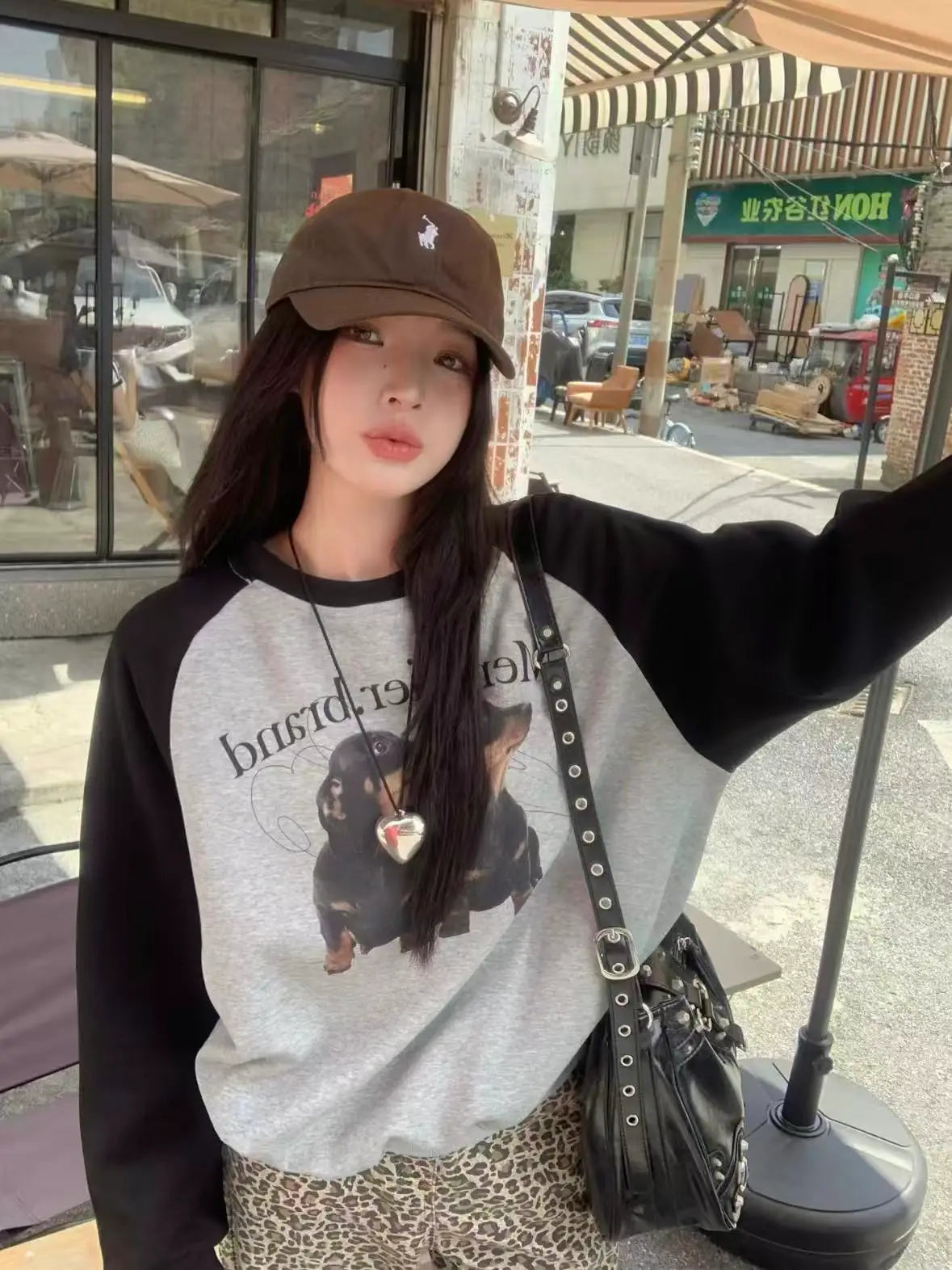 カラーブロックと小犬モチーフが目を惹くラグランスリーブスウェット。