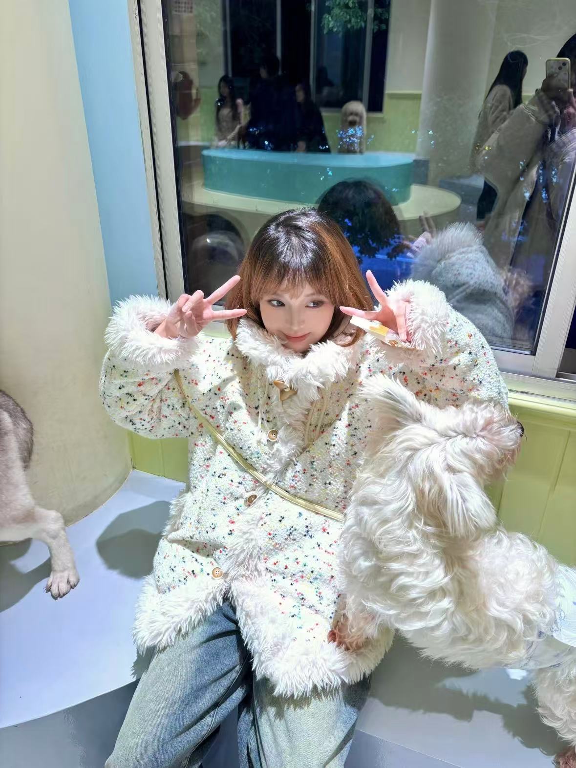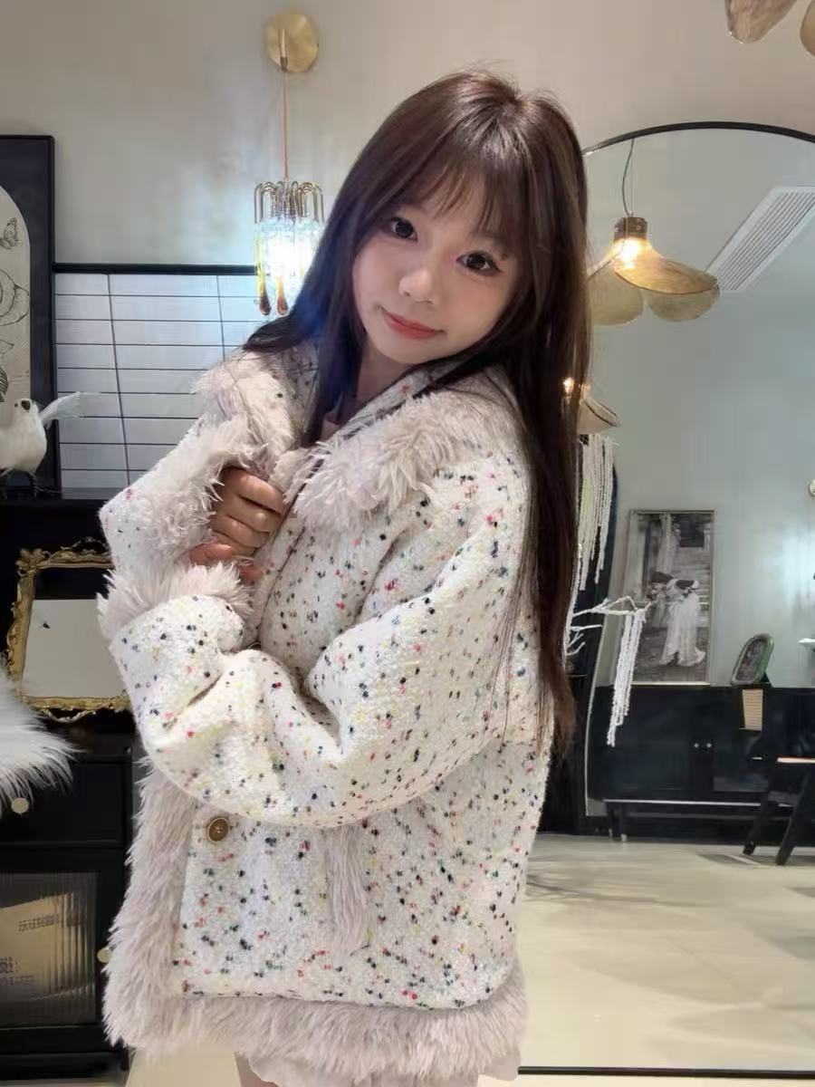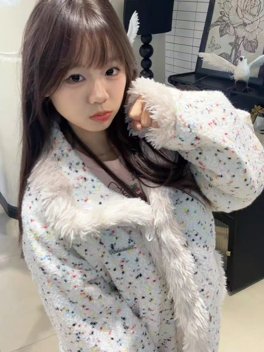 アメリカンレトロなカラーブロックが目を惹く、ふんわりボア仕立てのデザインジャケット。