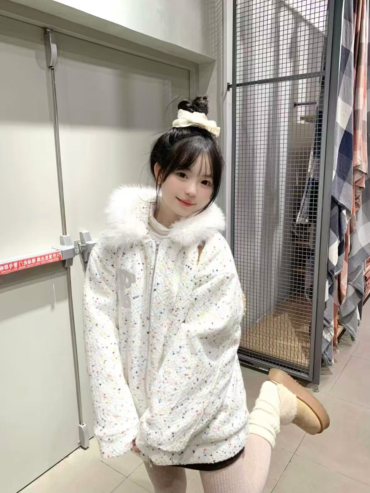Cropped Fleece Collar Padded Jacket OL1970