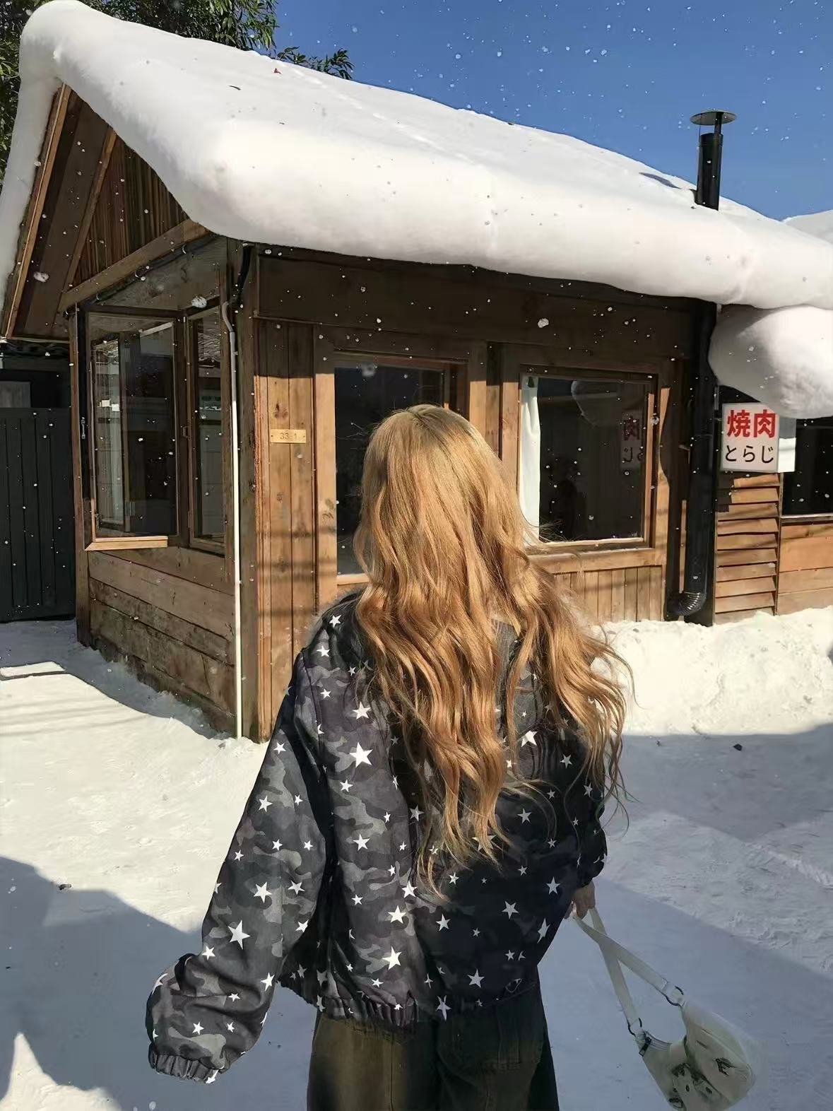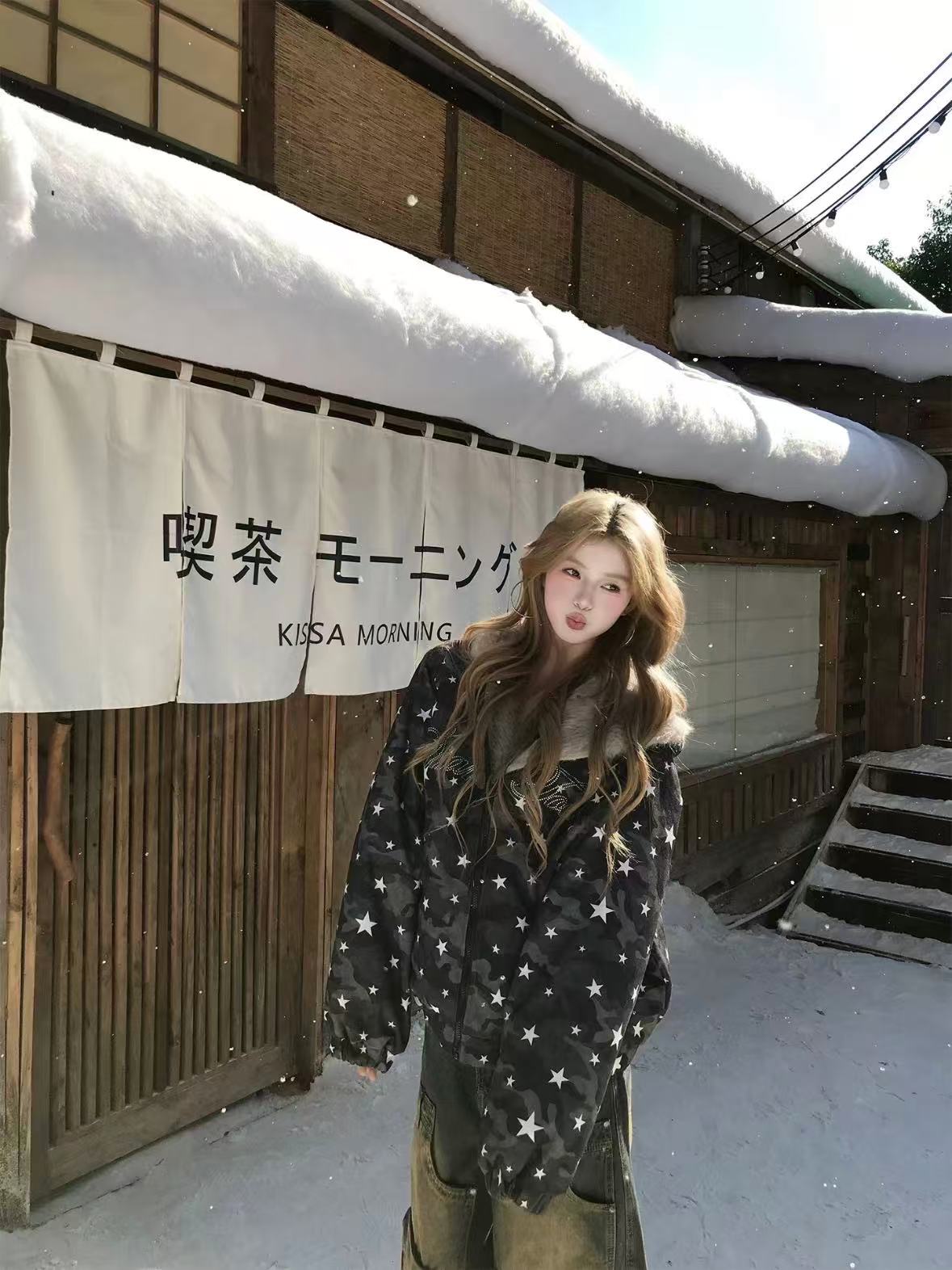Rhinestone Star Camo Hooded Padded Jacket   OL2045