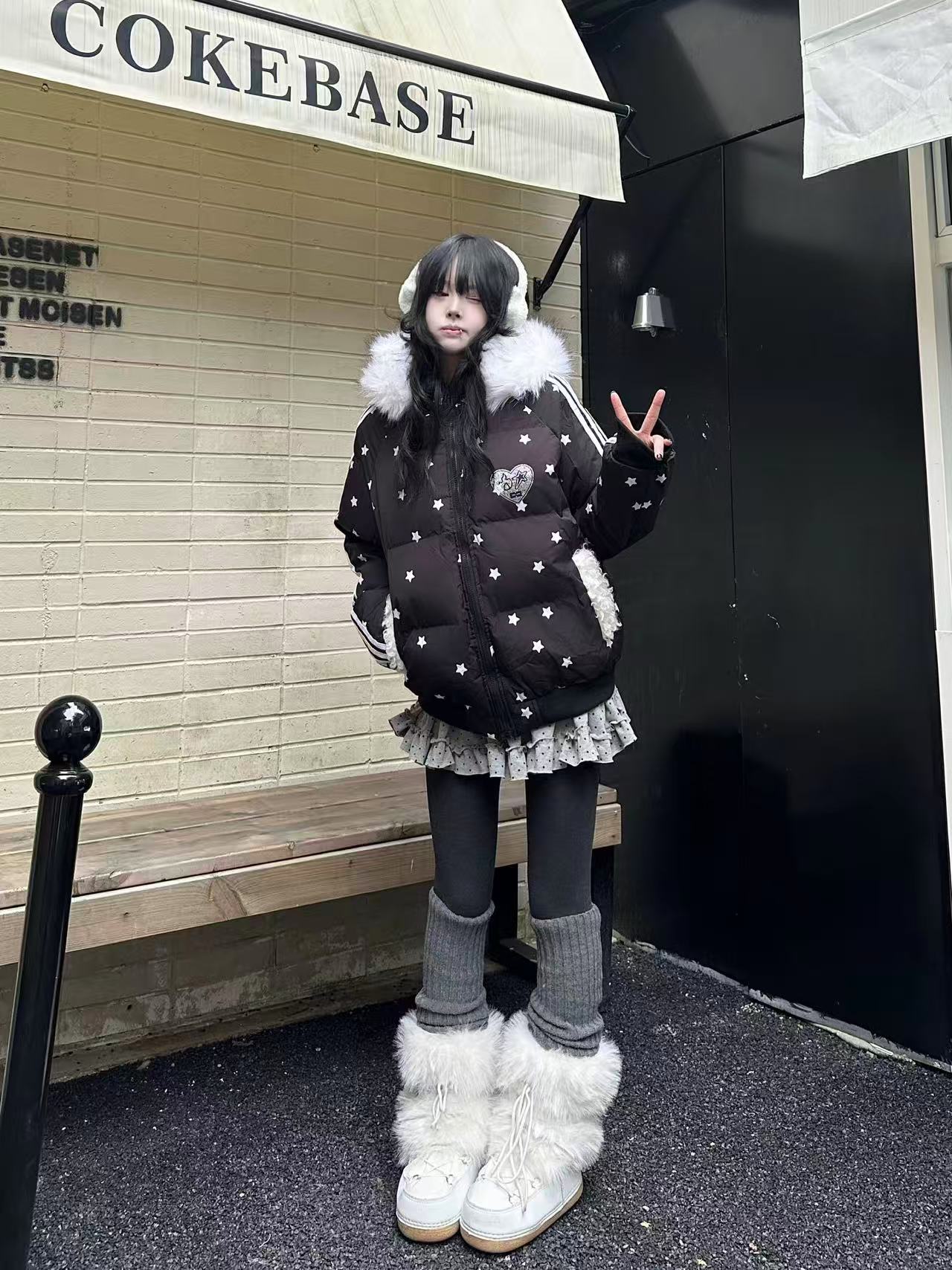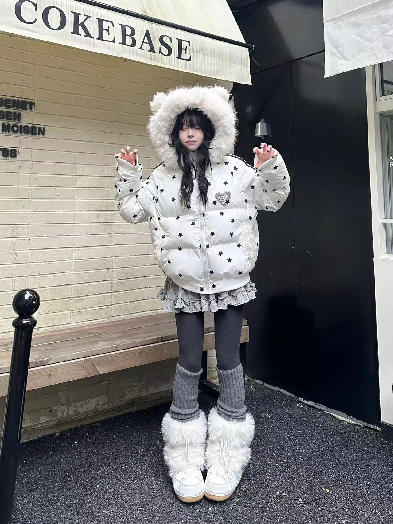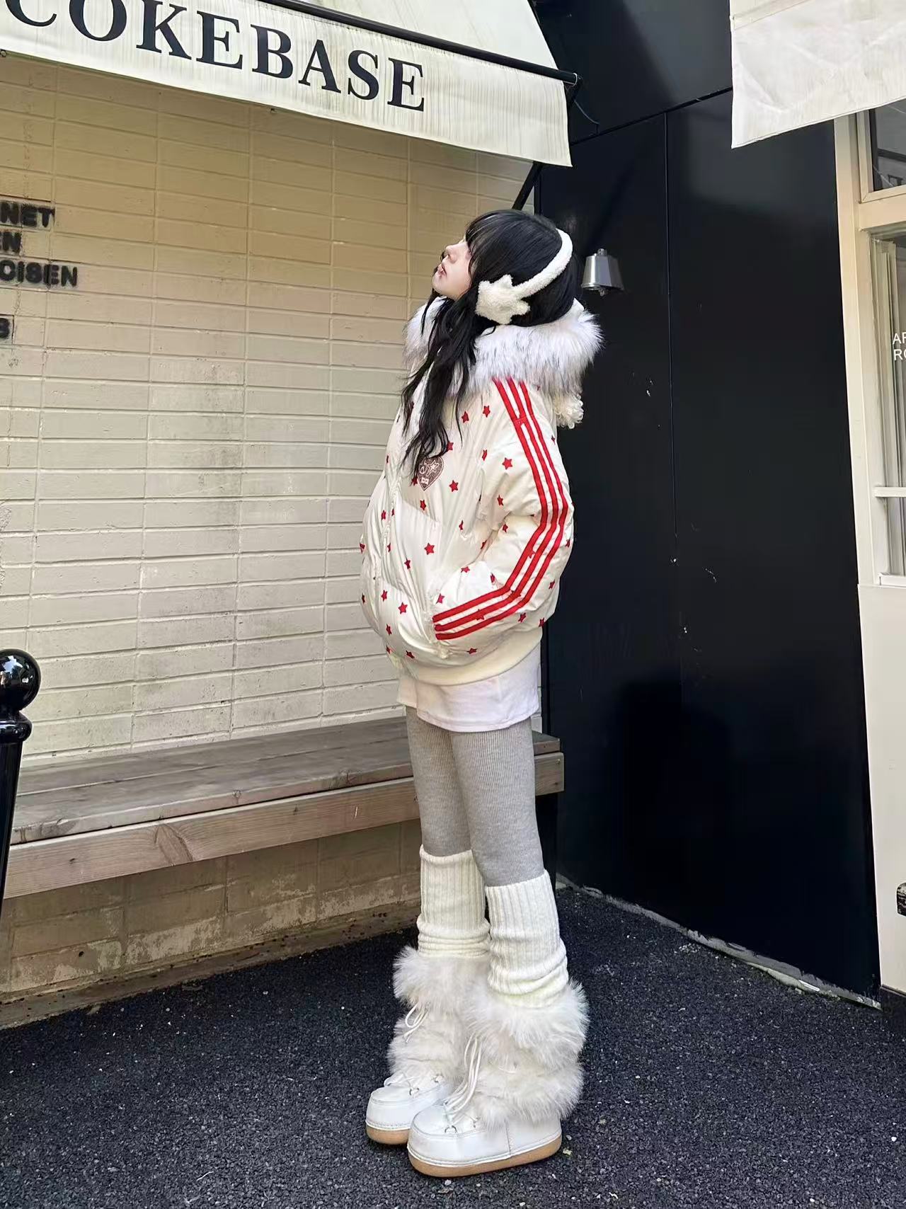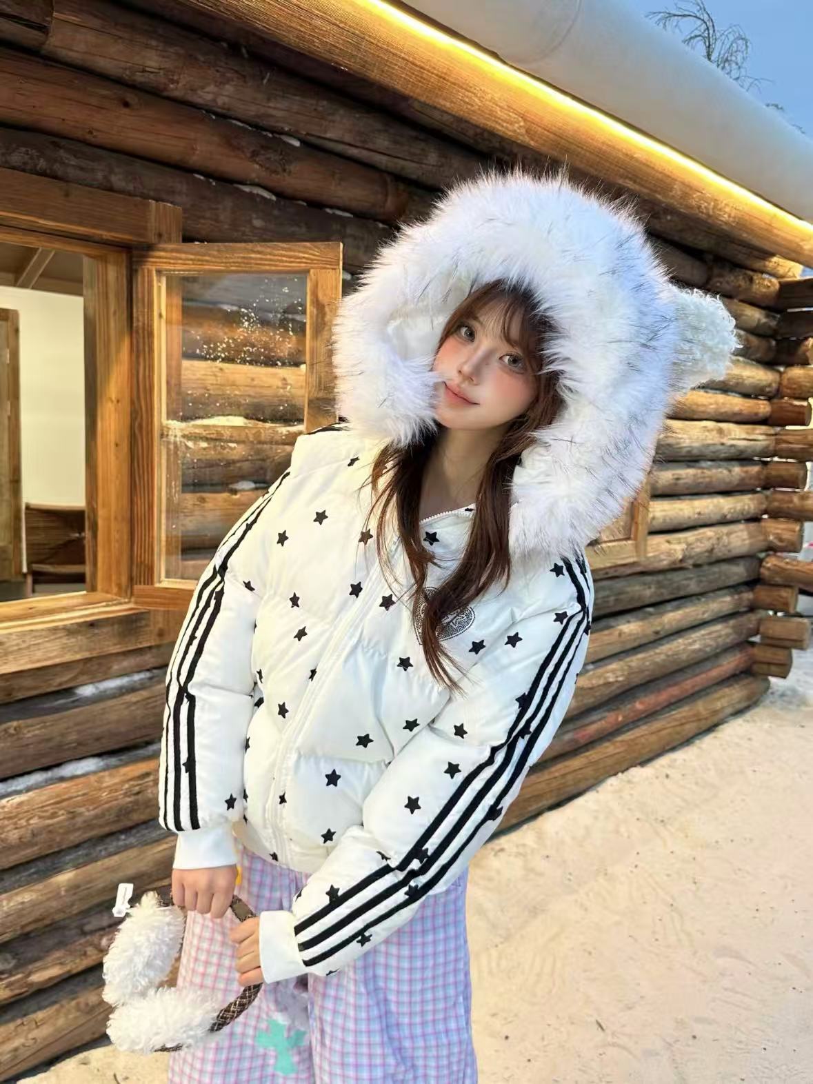 Star Print Faux Fur Hooded Puffer Jacket OL2029