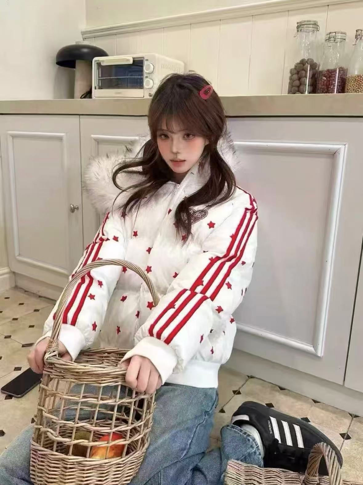 Star Print Stand Collar Puffer Jacket OL2017