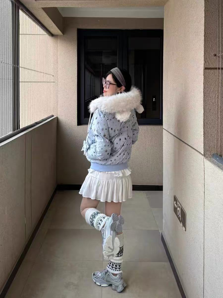Star Print Faux Fur Hooded Puffer Jacket OL2029