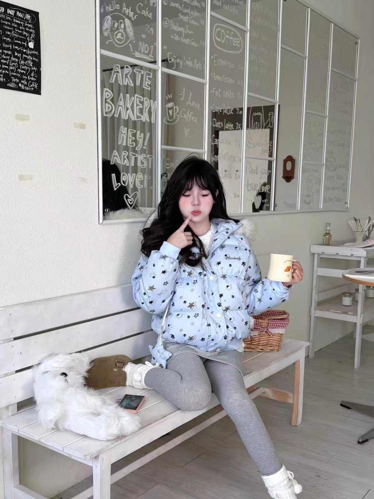 星柄を全面にあしらった、甘さとクールさを兼ね備えたフーデッドパデッドジャケット。