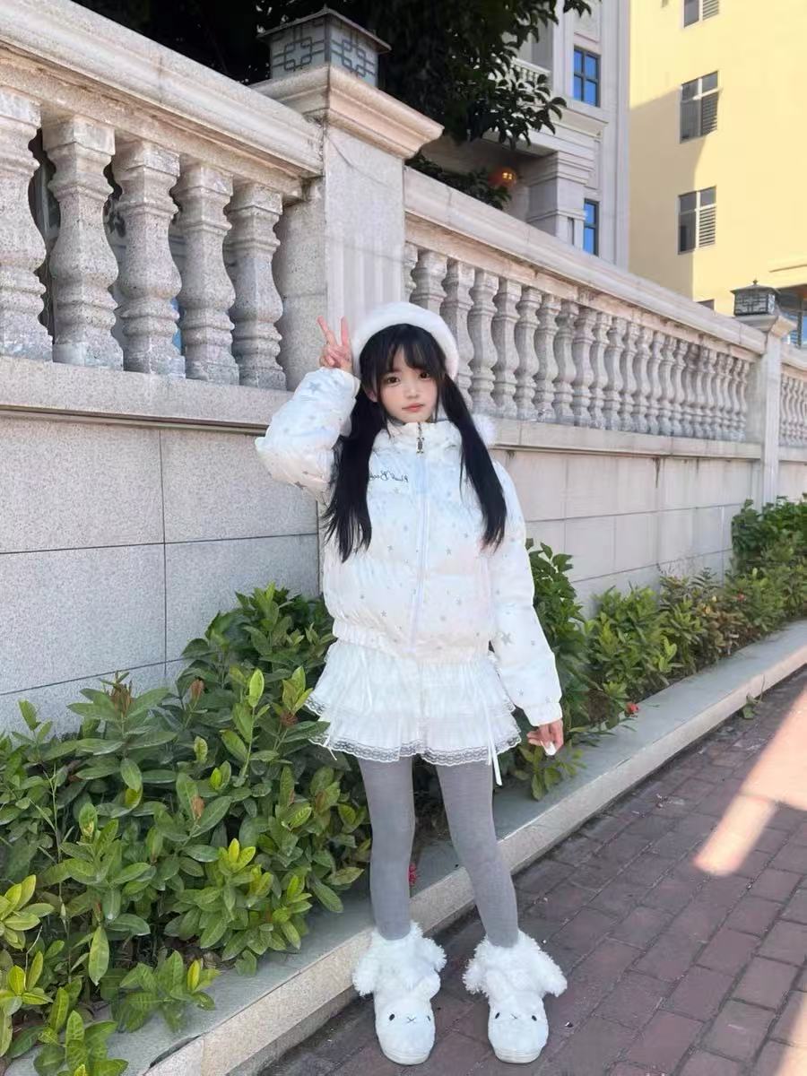 Star Print Cat Ear Padded Jacket with Removable Fur Collar OL2057