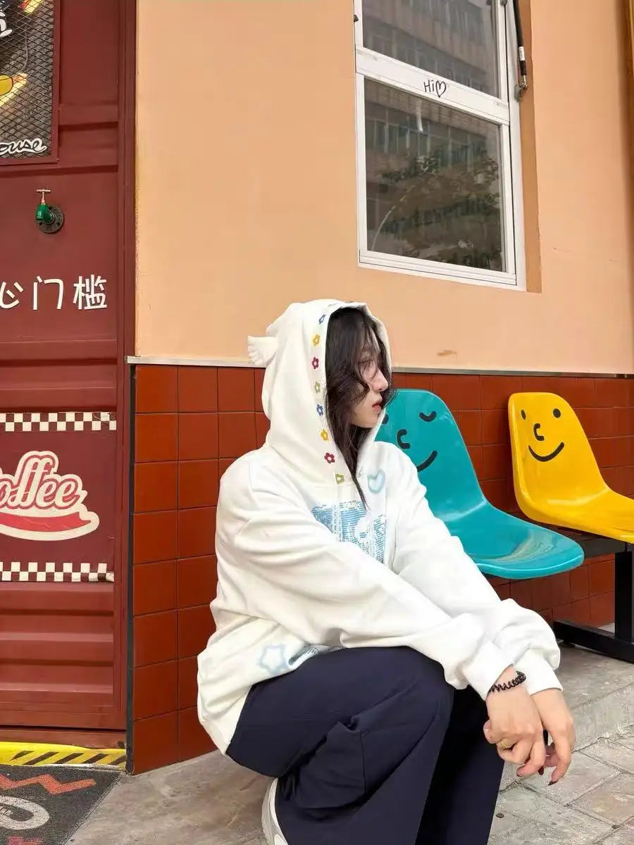 Striped Bunny Hood Fleece Lined Hoodie OL2012