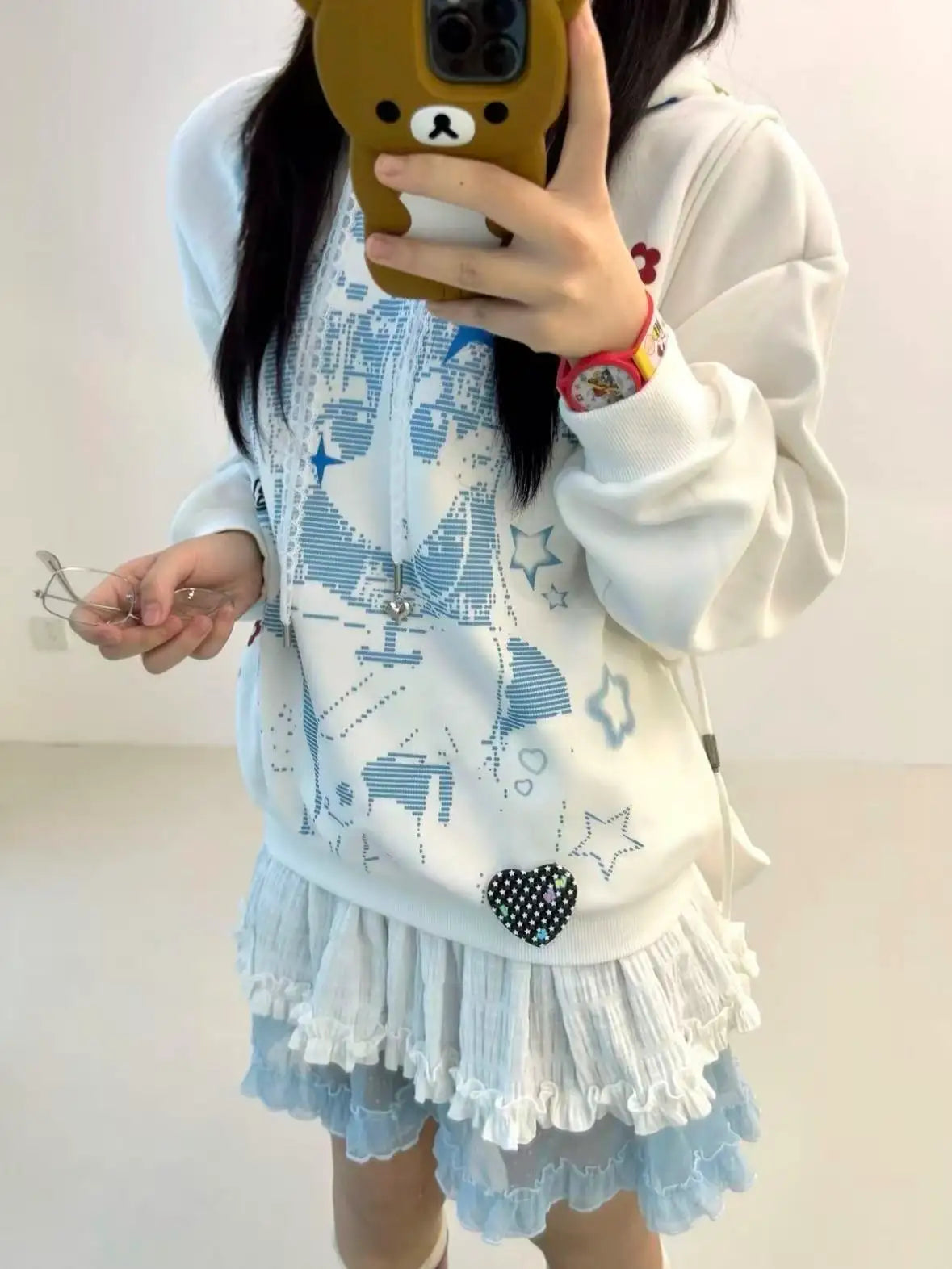 Star Print Cat Ear Padded Jacket with Removable Fur Collar OL2057