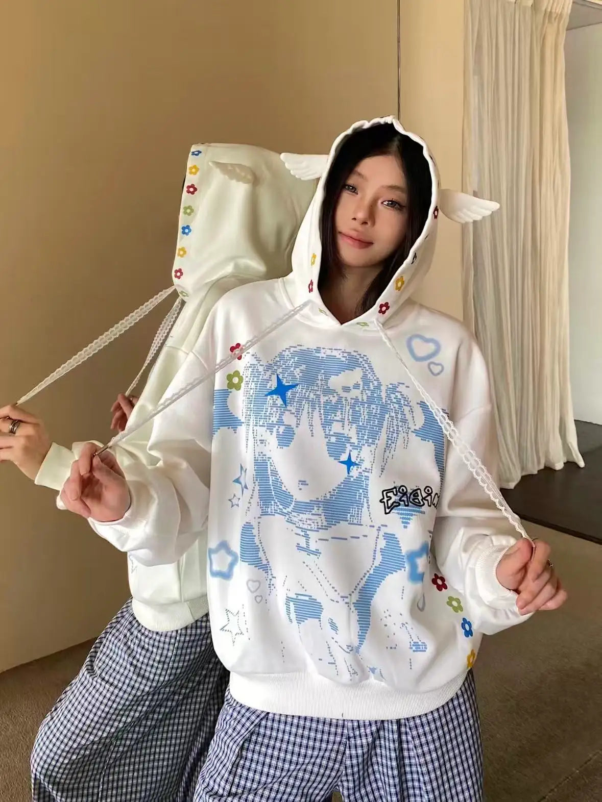 アメリカンヴィンテージの空気感に、カートゥーンタッチのウィングモチーフを落とし込んだデザインフーディー。