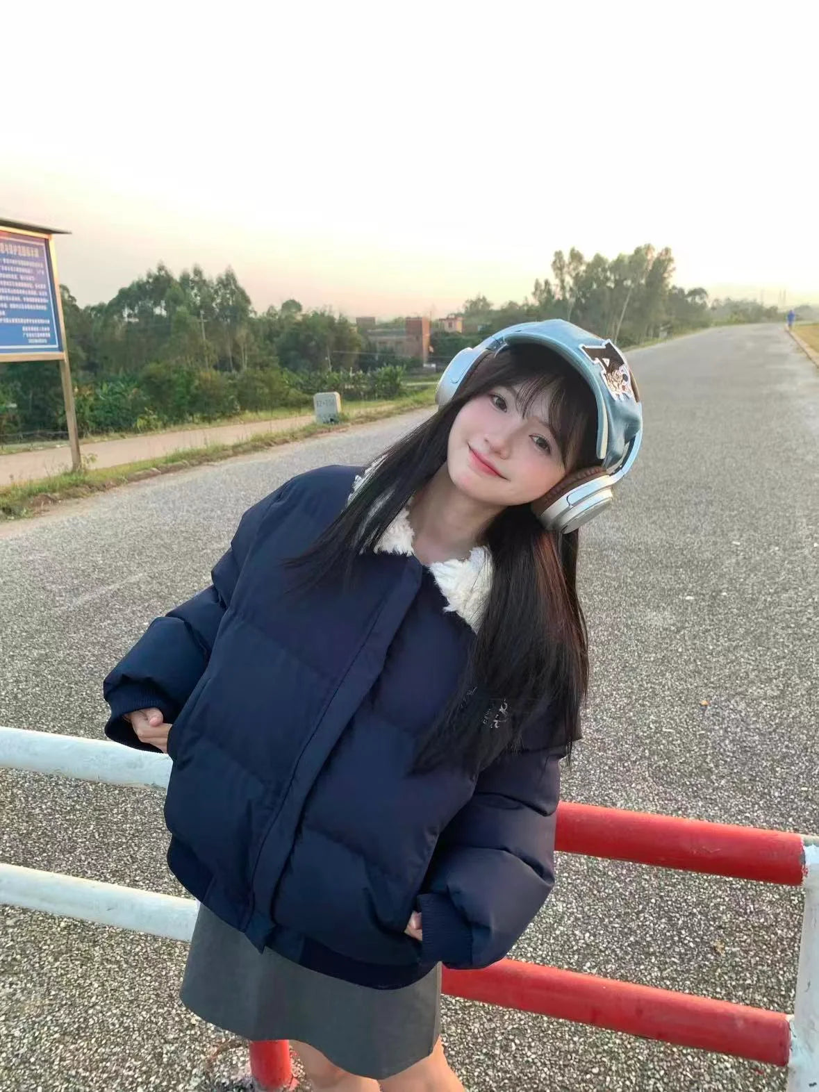 Star Print Cat Ear Padded Jacket with Removable Fur Collar OL2057