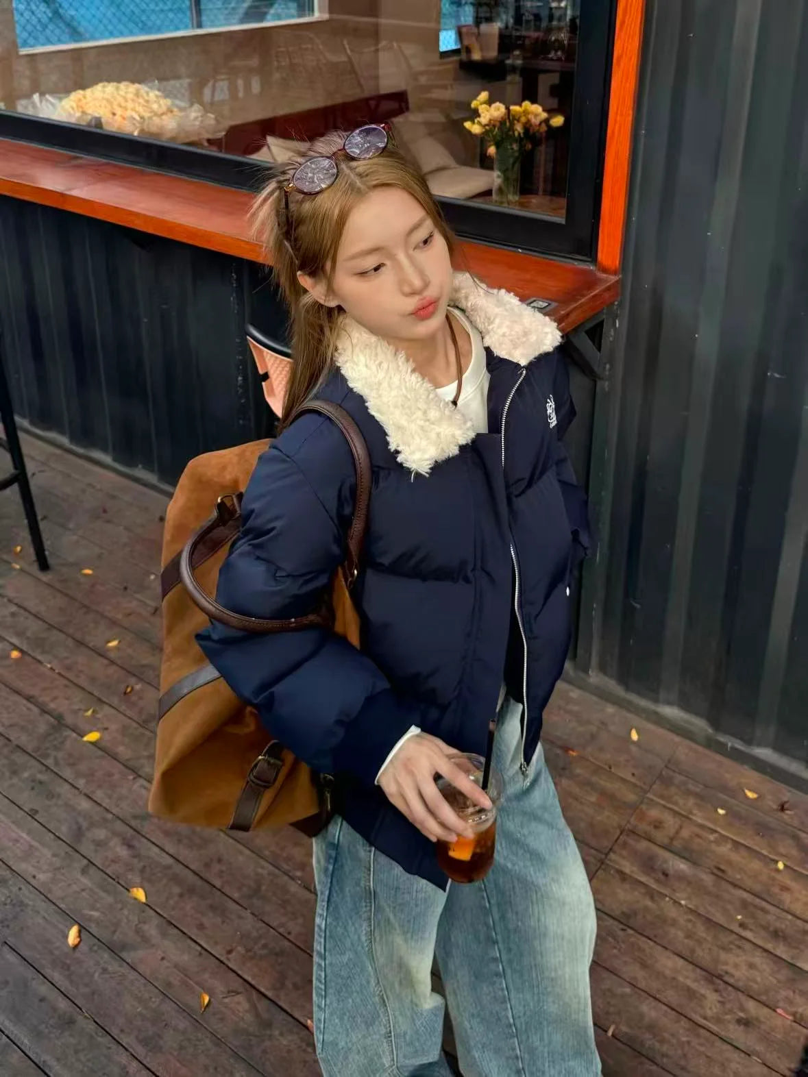 Vintage Suede Cross Faux-Fur Hooded Puffer OL2028