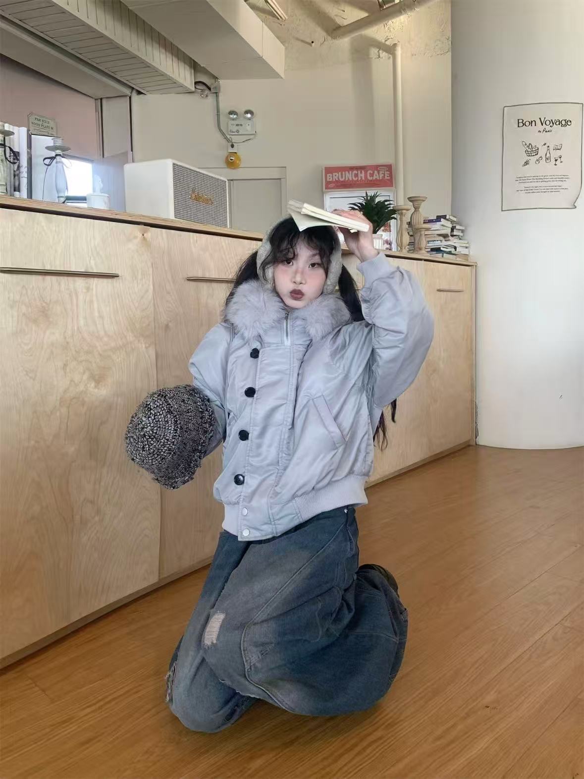 Vintage Embroidered Fur Hood Parka Jacket   OL2013