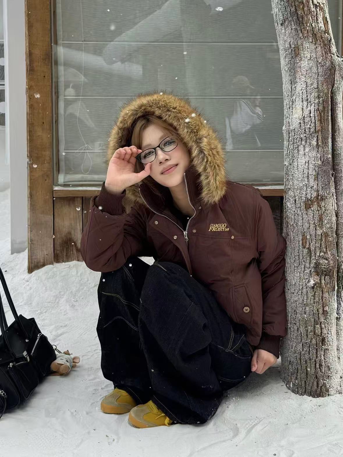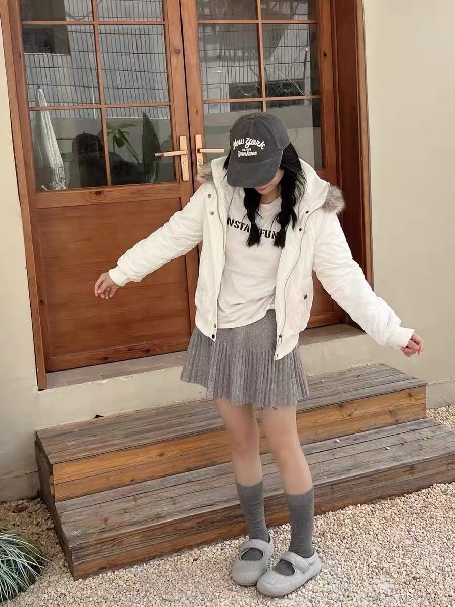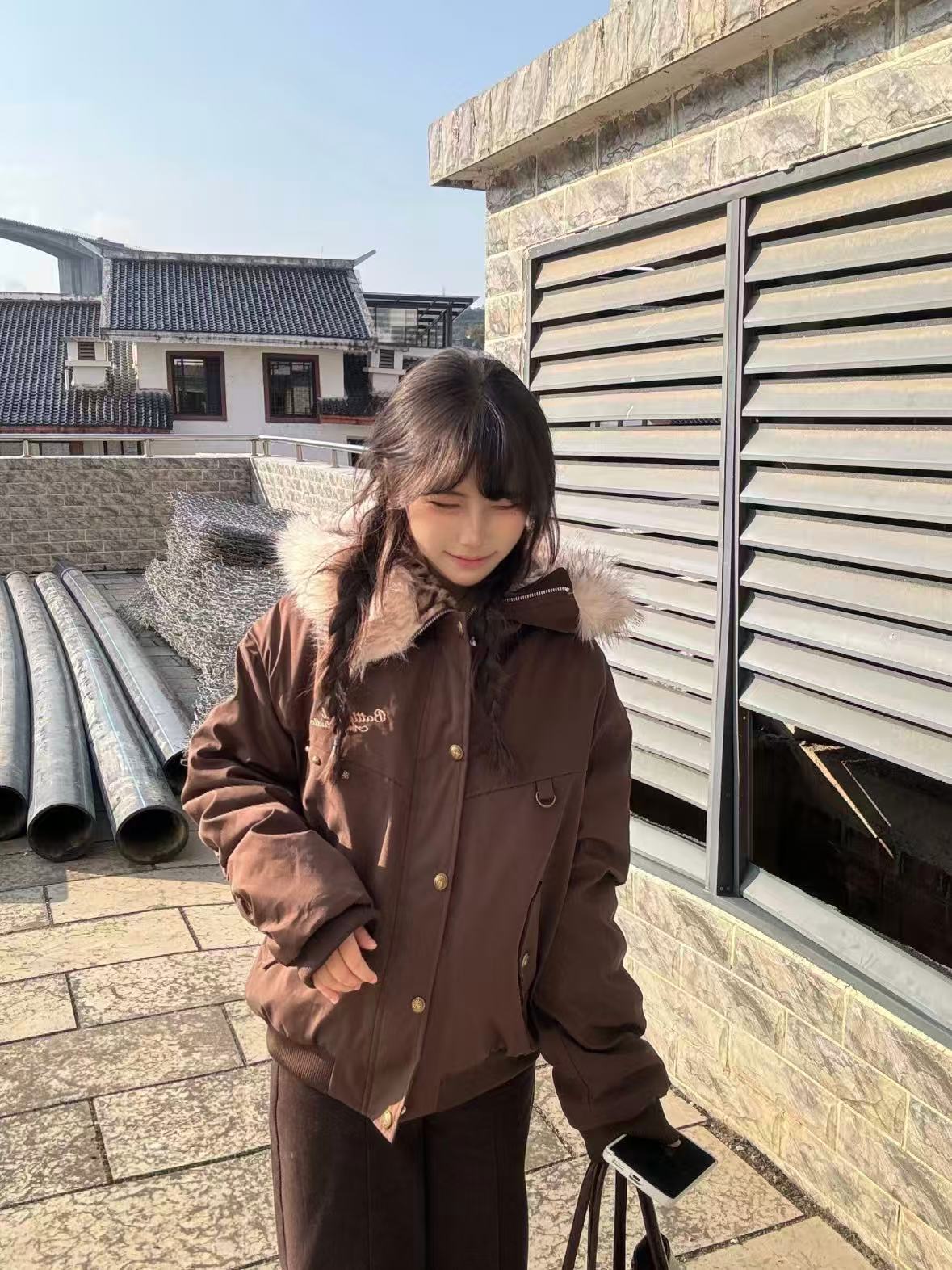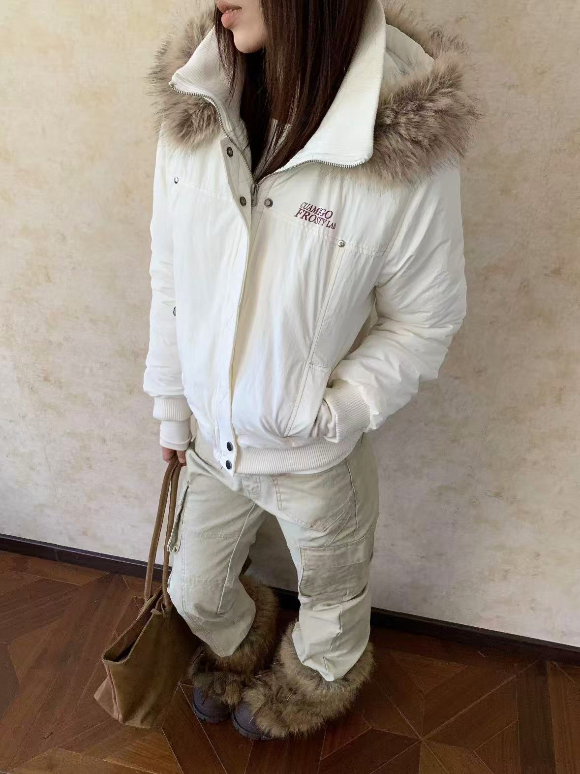 Vintage Suede Cross Faux-Fur Hooded Puffer OL2028