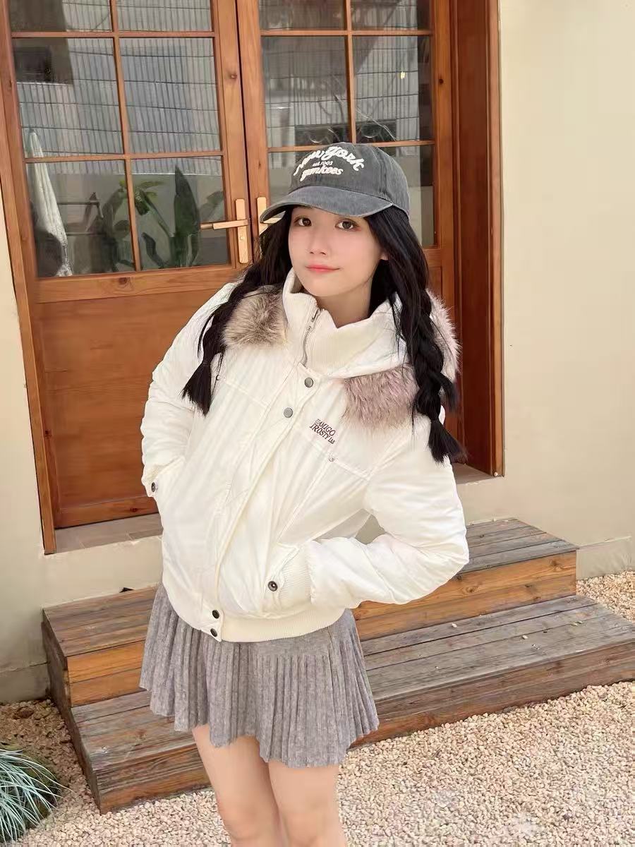 Star Puffer Jacket with Faux-Fur Collar OL2009